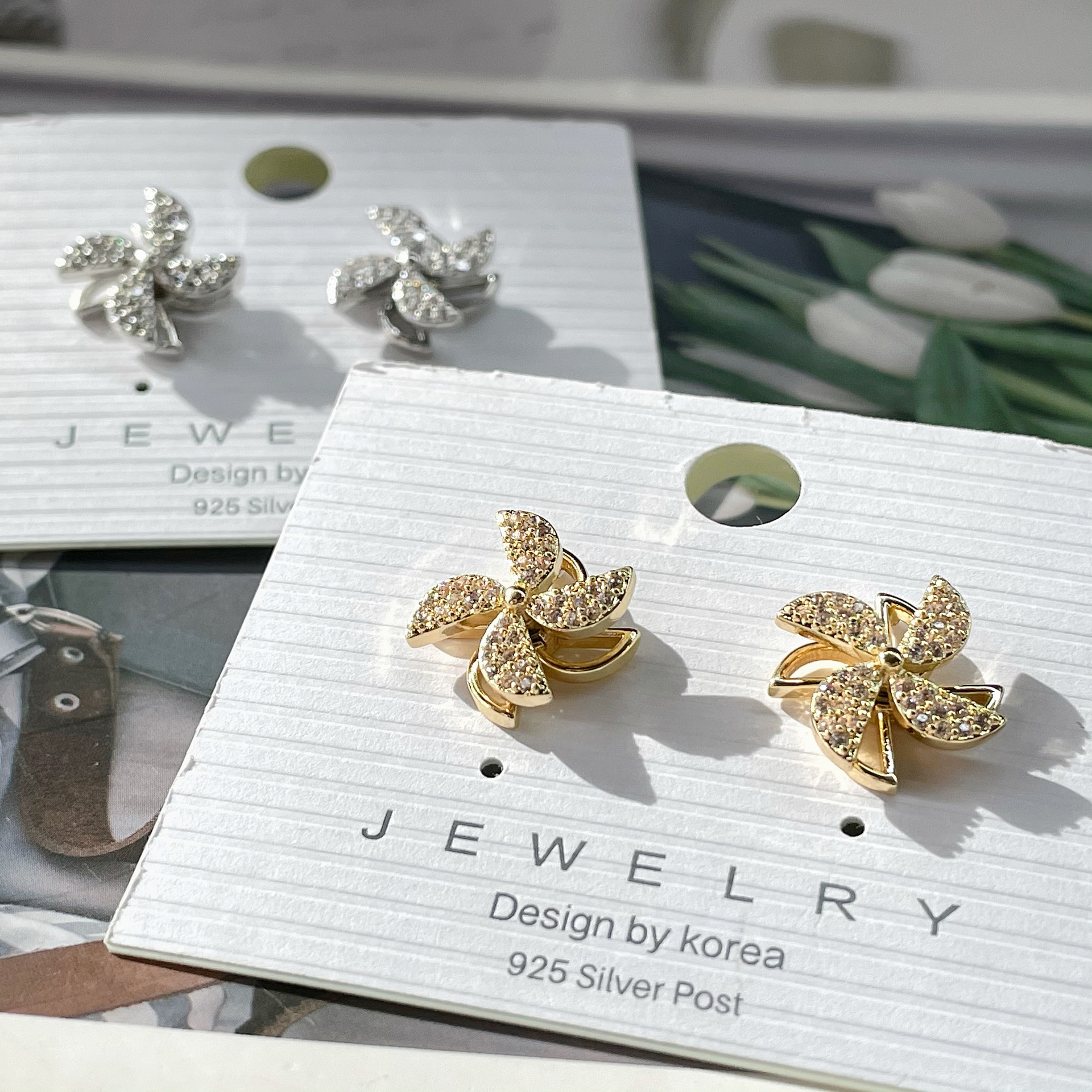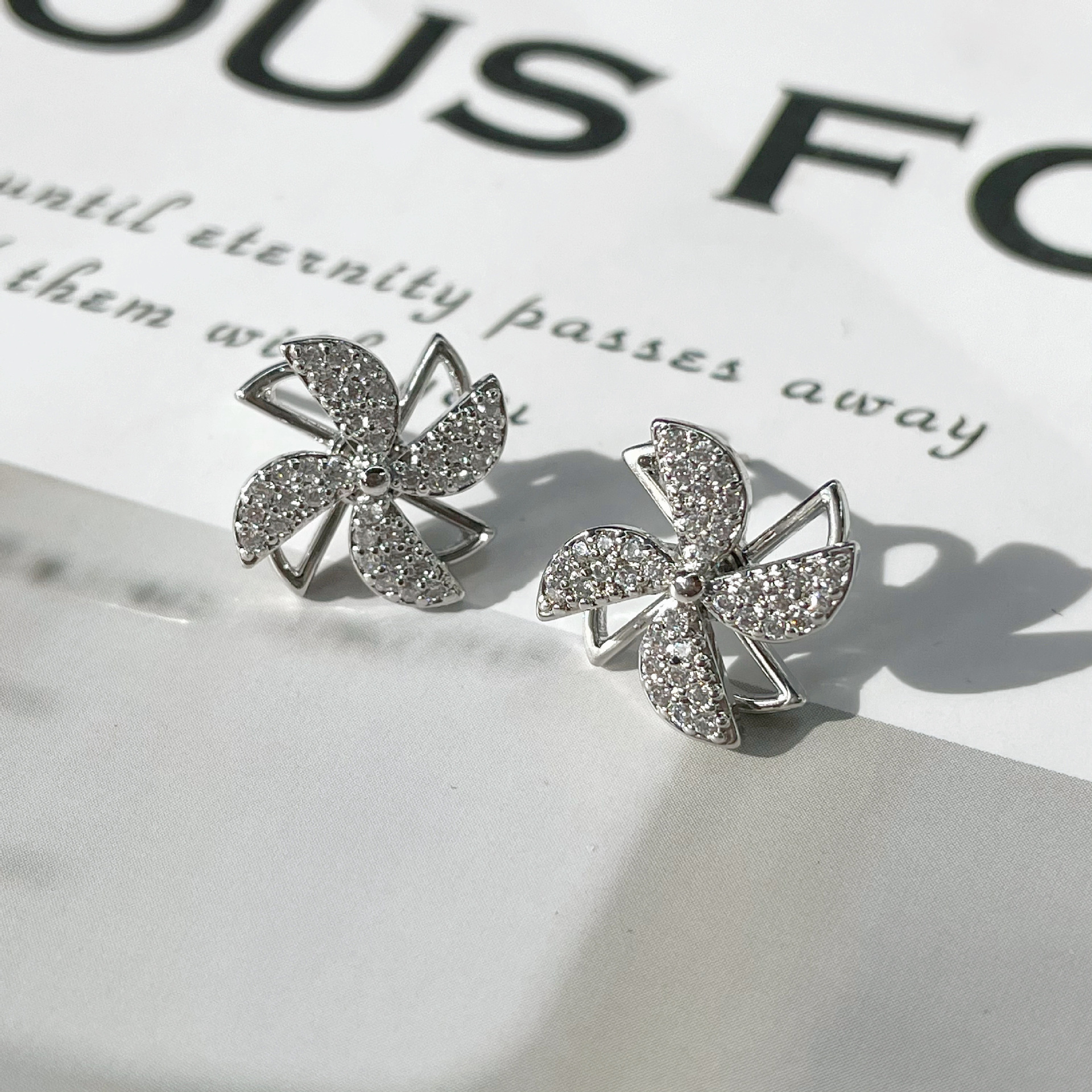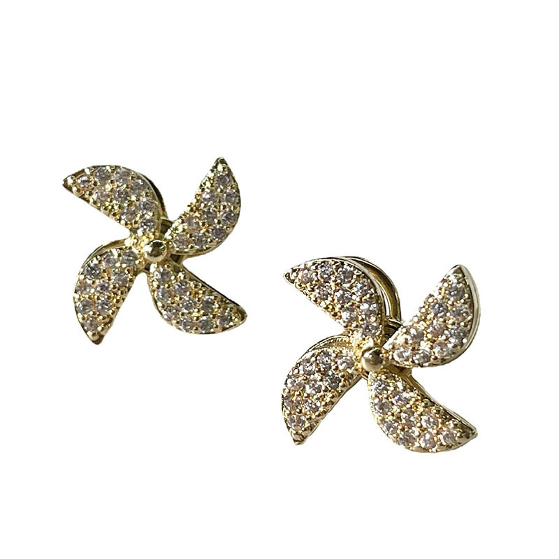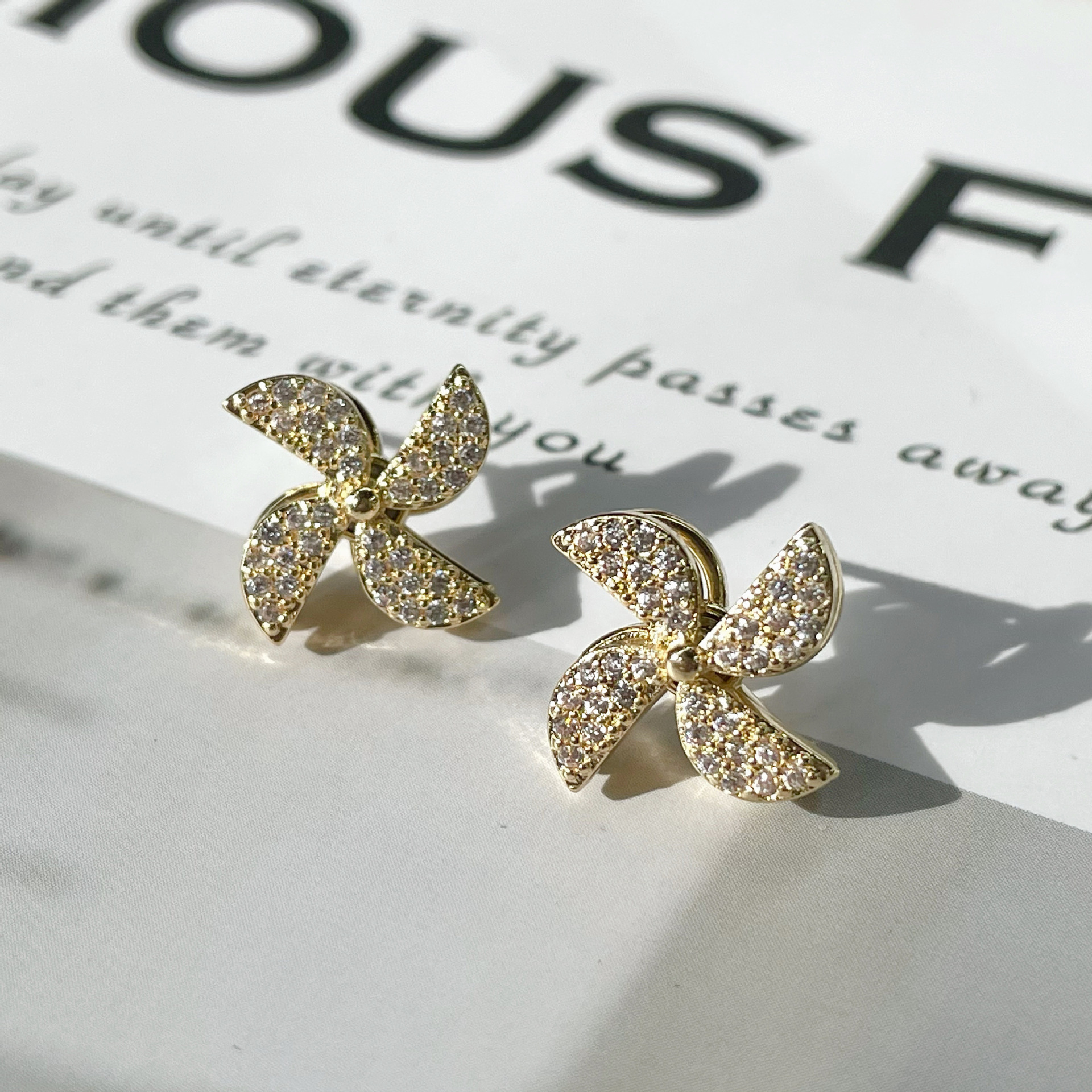 laiton boucle d oreille dormeuse, moulin à vent, Placage, bijoux de mode & pavé de micro zircon, plus de couleurs à choisir, 25x25x25mm, Vendu par paire