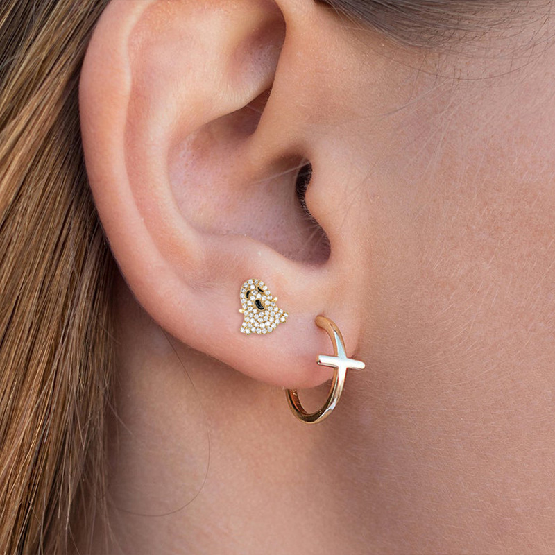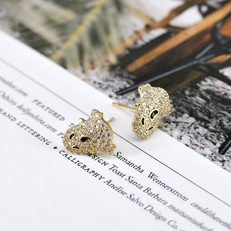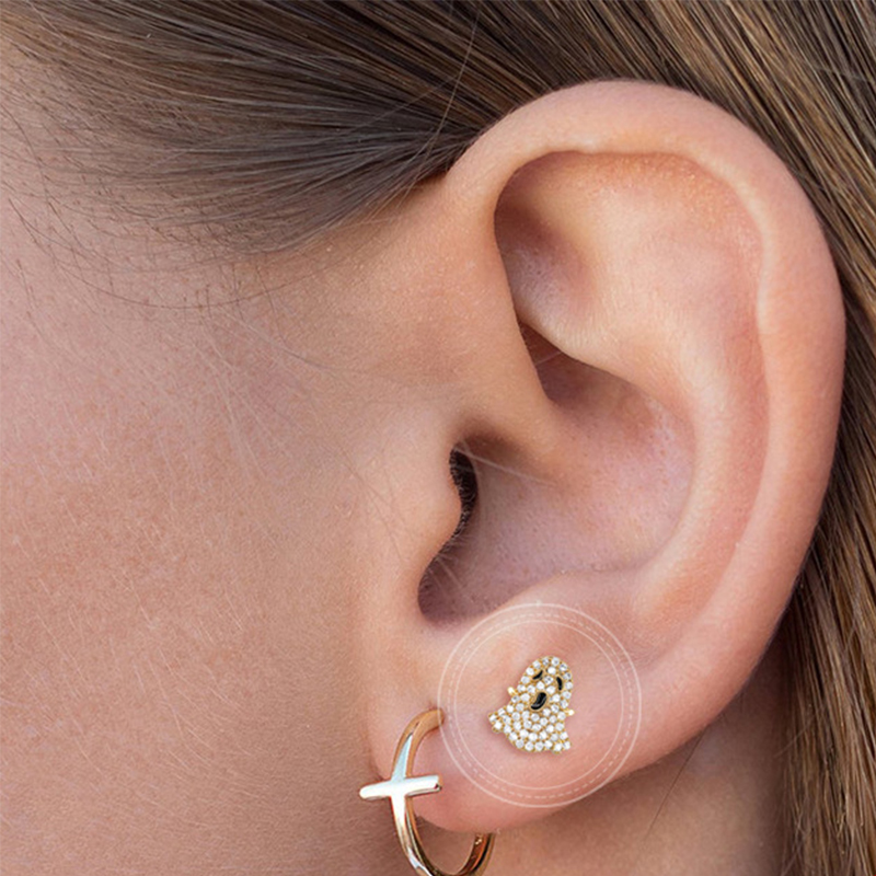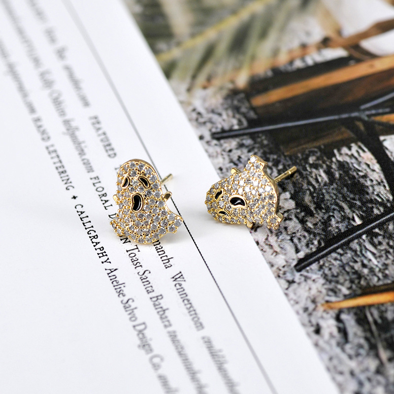 laiton boucle d oreille dormeuse, fantôme, Placage de couleur d'or, pour femme & avec strass, 20mm, Vendu par paire
