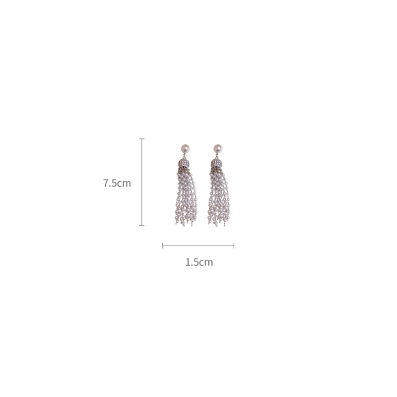 laiton boucle d'oreille en gland, avec perle de plastique, Placage de couleur argentée, pavé de micro zircon & pour femme, 15x75mm, Vendu par paire