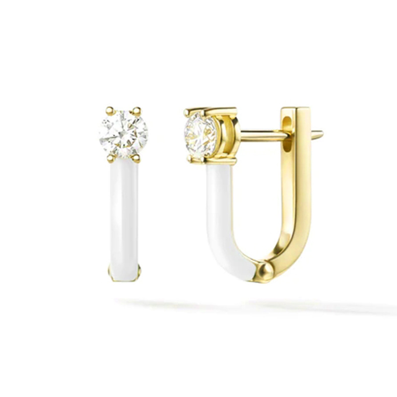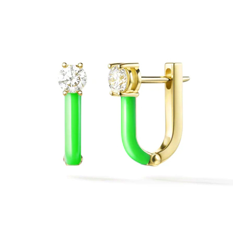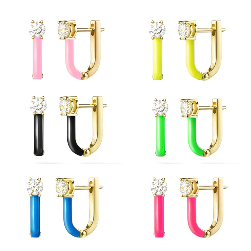laiton boucle d'oreille leverback, Lettre U, Placage de couleur d'or, pour femme & émail & avec strass, plus de couleurs à choisir, 13x15mm, Vendu par paire