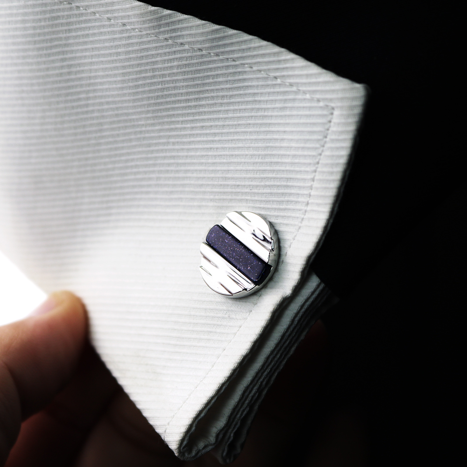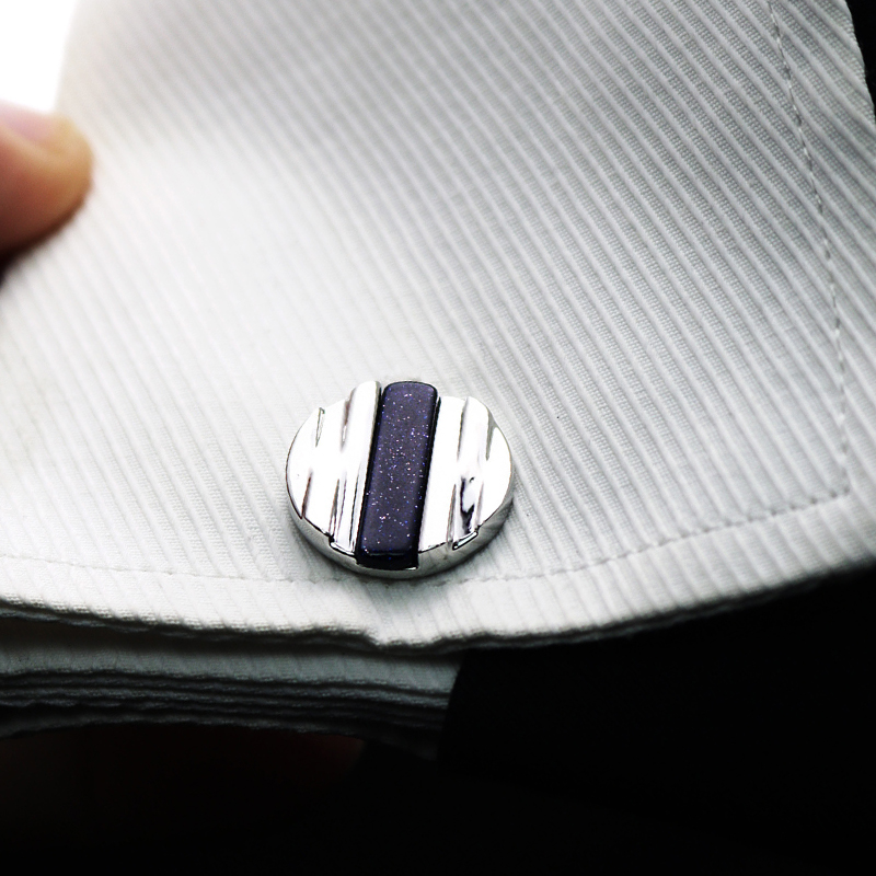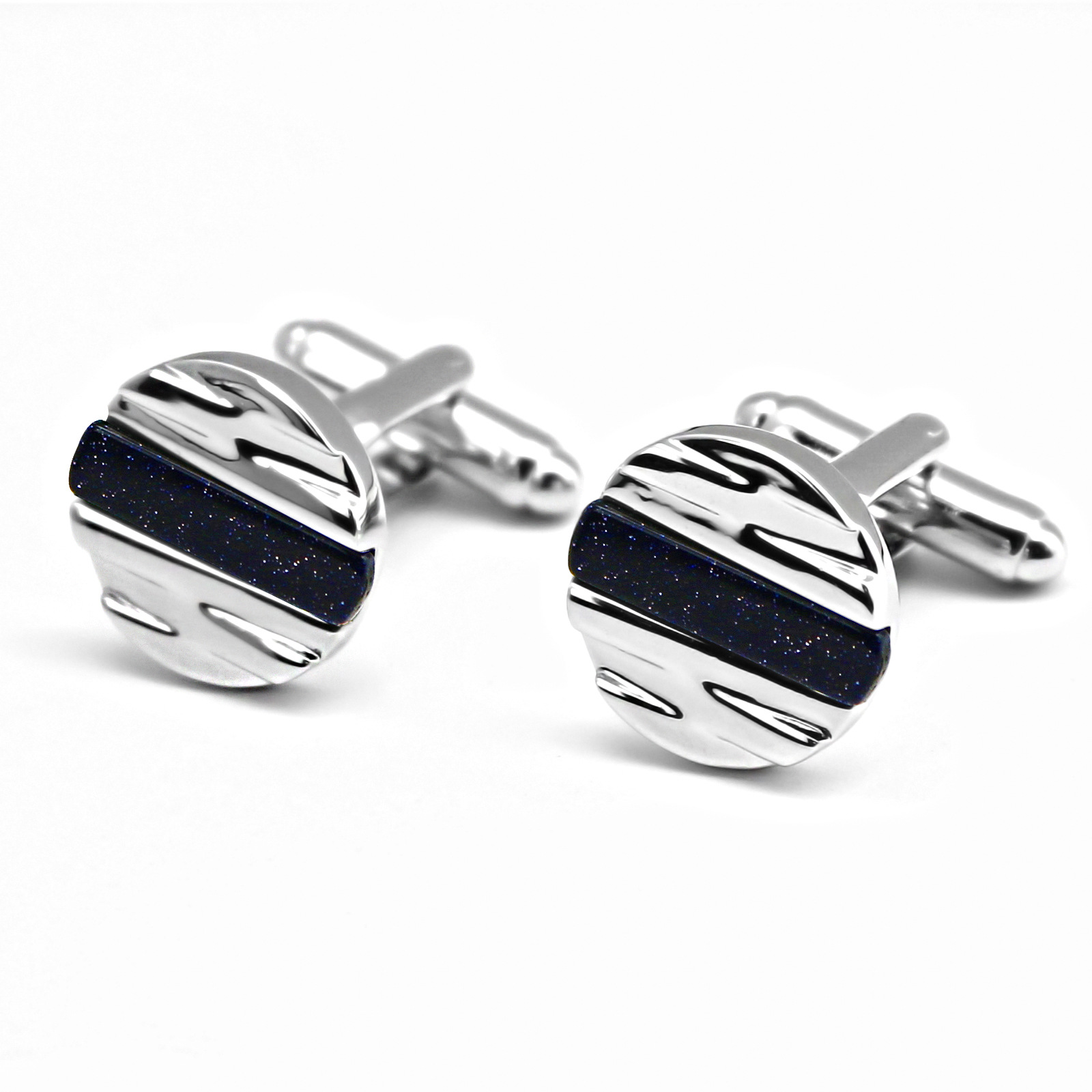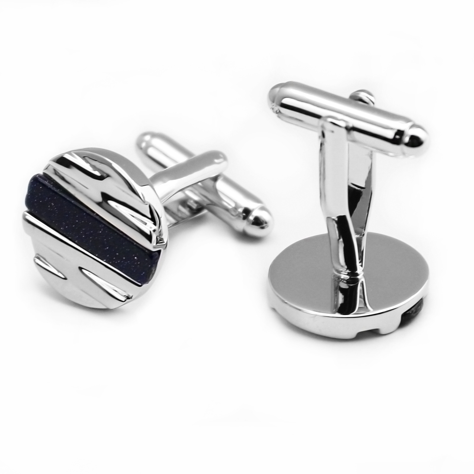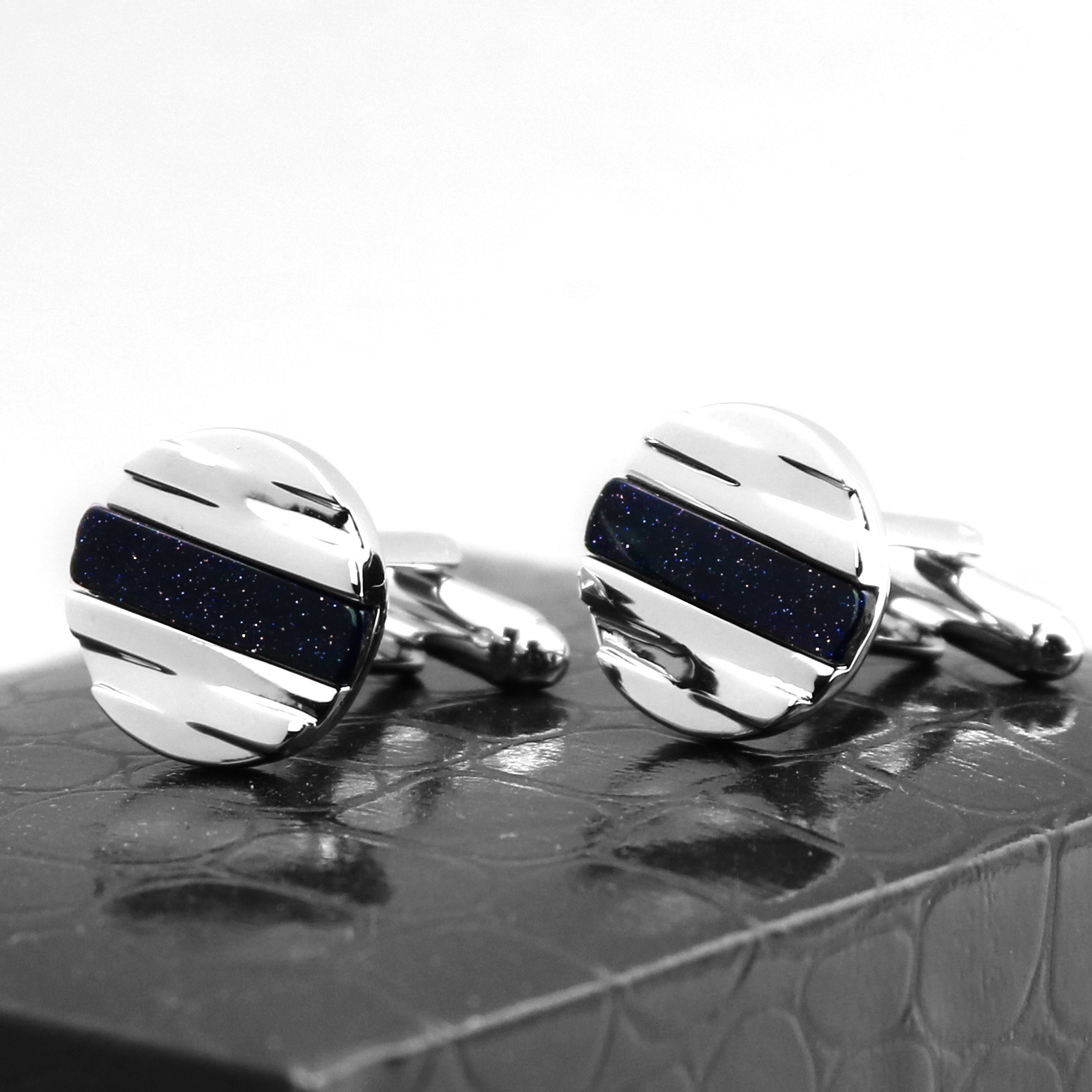 laiton boutons de manchettes, avec pierre bleue d'or, Rond, Placage de couleur argentée, bijoux de mode & pour homme, 18mm, Vendu par paire