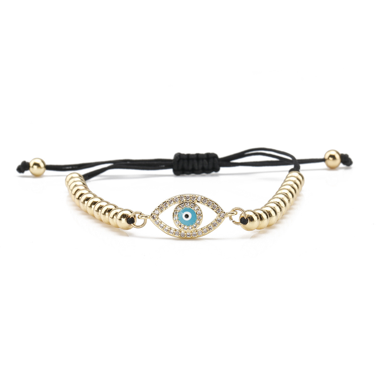 laiton bracelet, avec cordon de polyester, Mauvais œil, Placage, unisexe & styles différents pour le choix & pavé de micro zircon & émail, Longueur:Environ 6-10 pouce, Vendu par PC