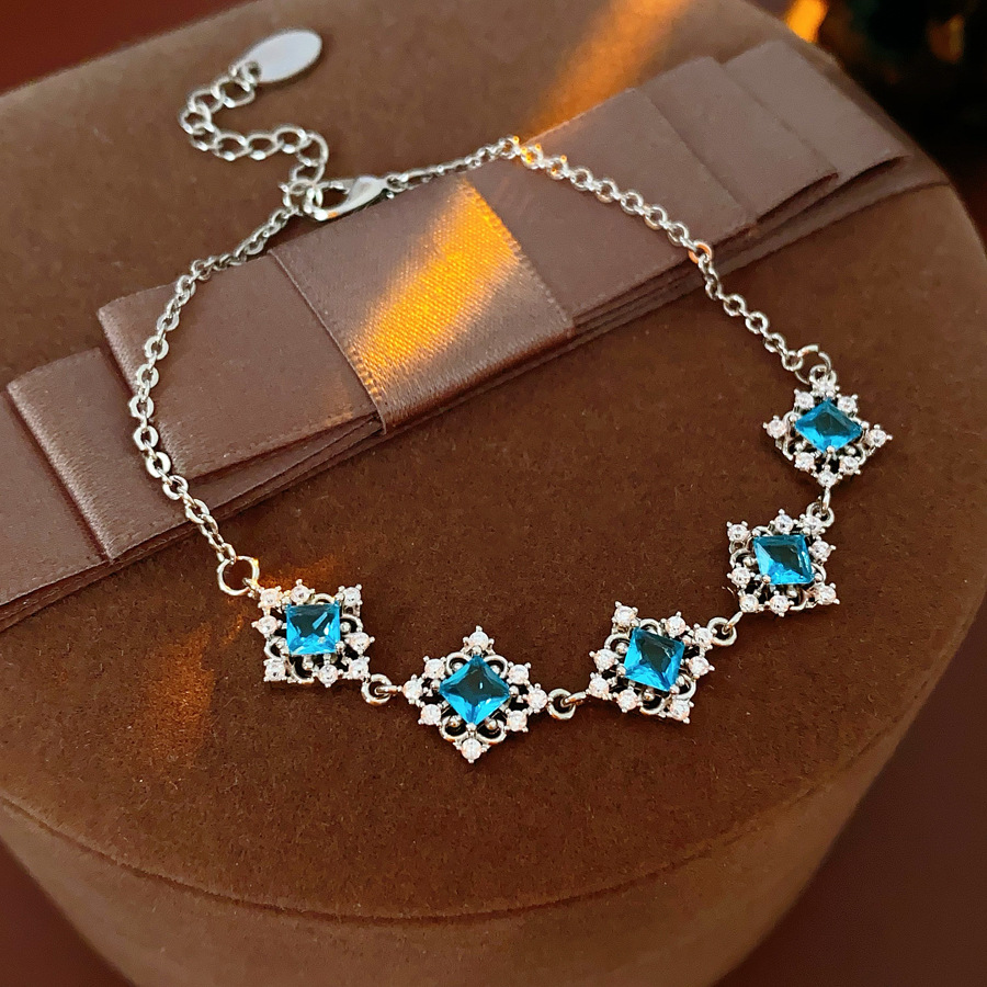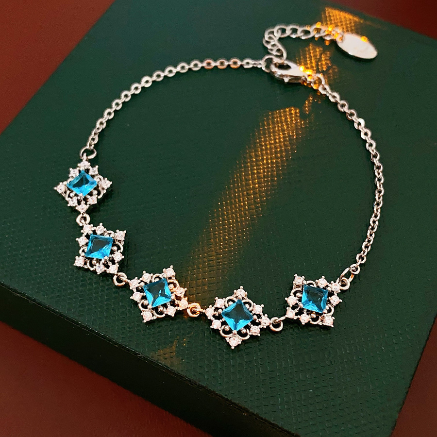 laiton bracelet, Motif géométrique, Placage de couleur argentée, pavé de micro zircon & pour femme, Longueur:Environ 8.7 pouce, Vendu par PC