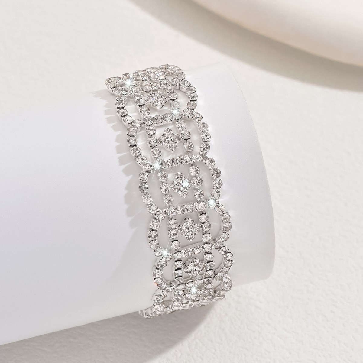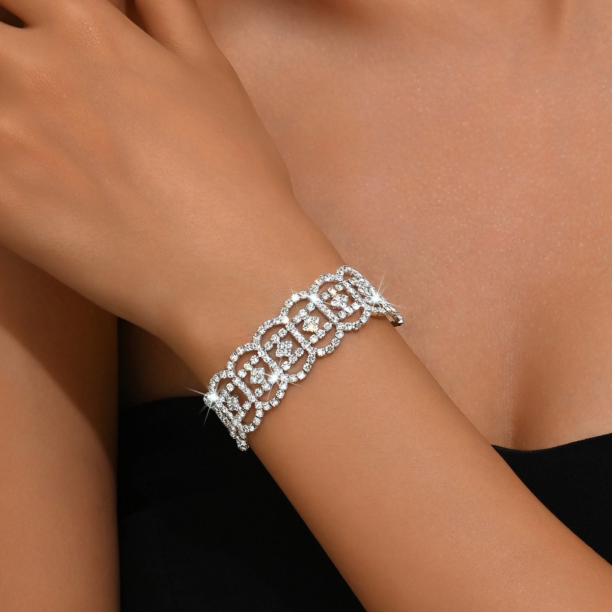 laiton bracelet, Placage de couleur argentée, pour femme & avec strass & creux, Longueur:Environ 7 pouce, Vendu par PC
