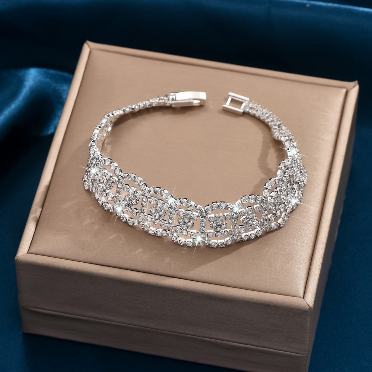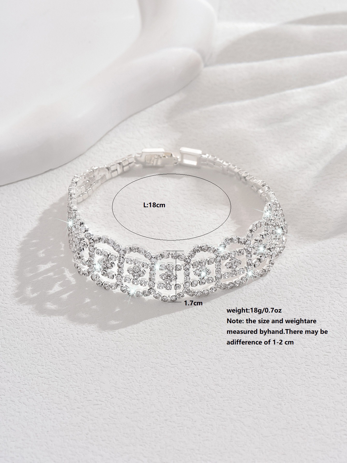 Strass bracelets de cuivre, laiton, Placage de couleur argentée, avec strass 4mm pouce, Vendu par brin