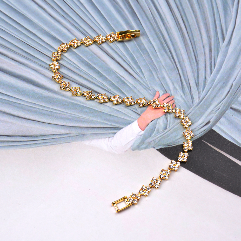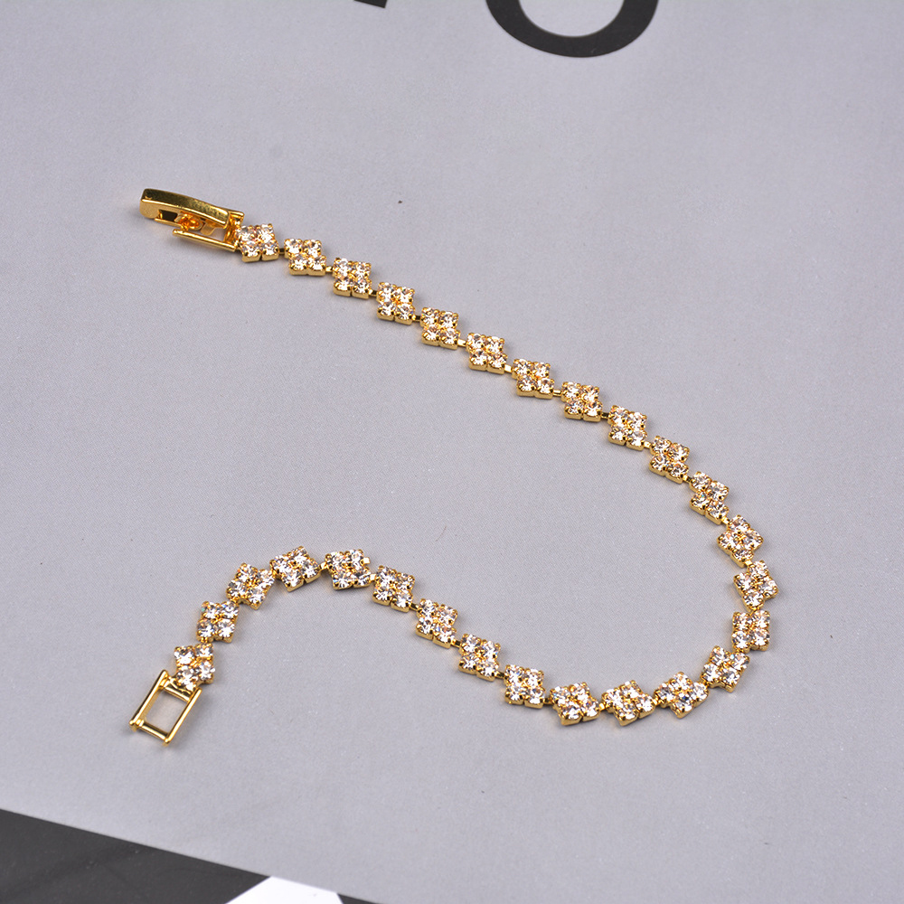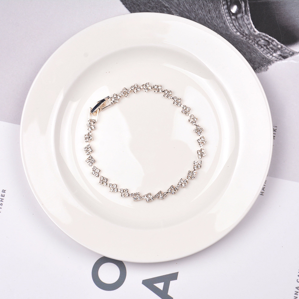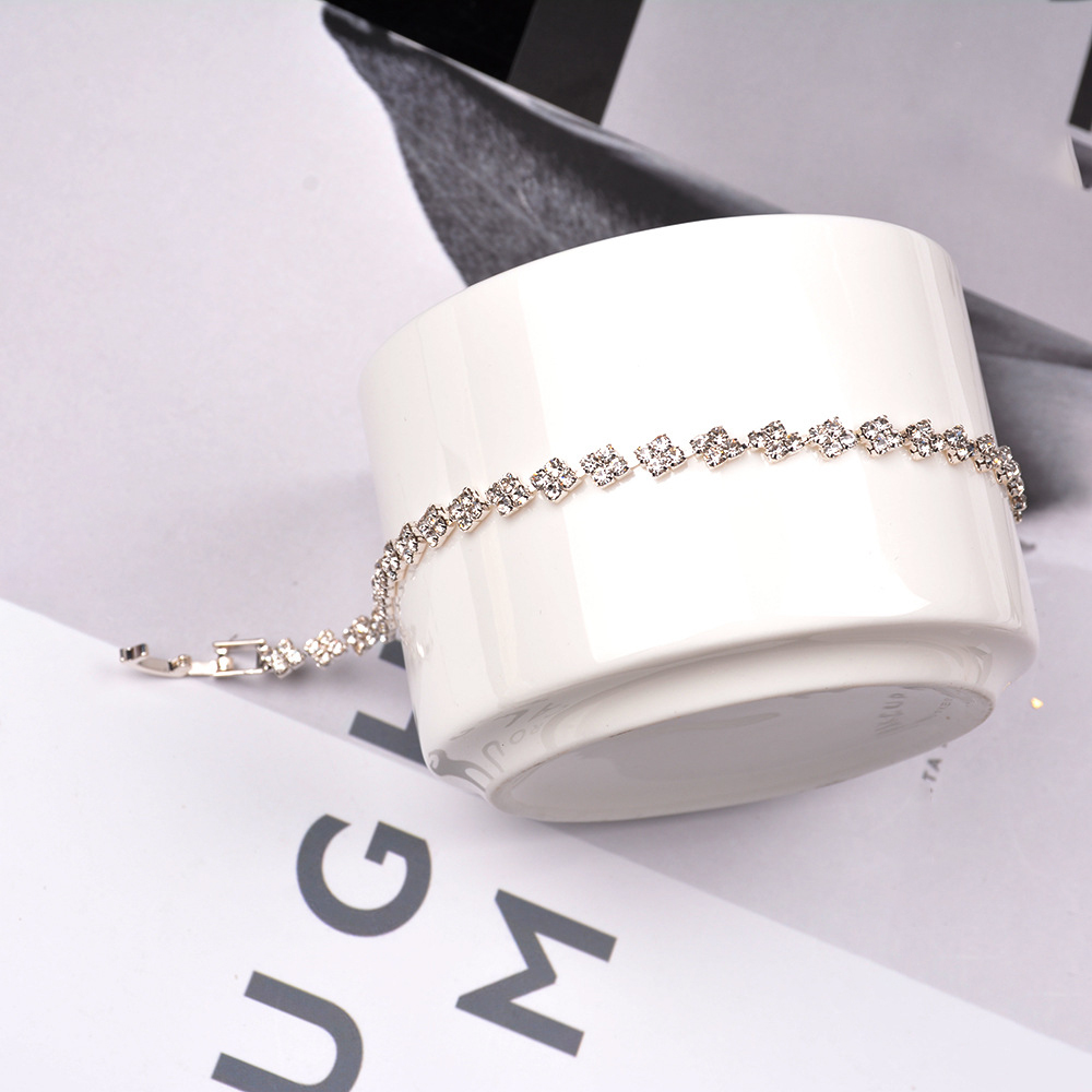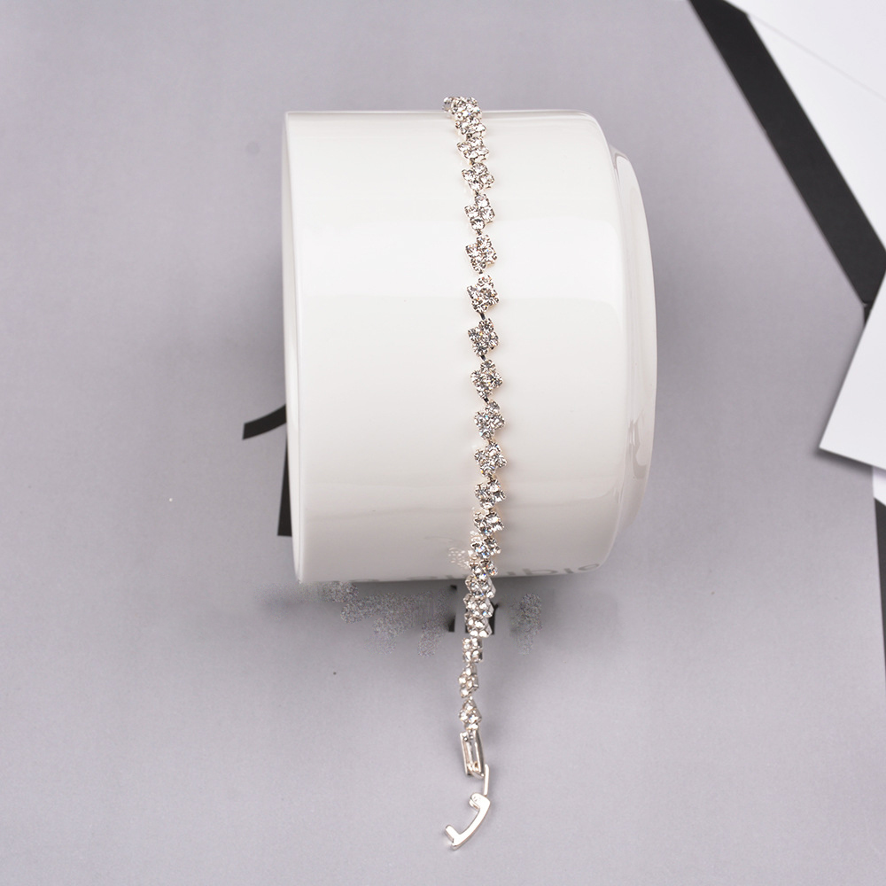 Strass bracelets de cuivre, laiton, Placage de couleur argentée, avec strass 4mm pouce, Vendu par brin