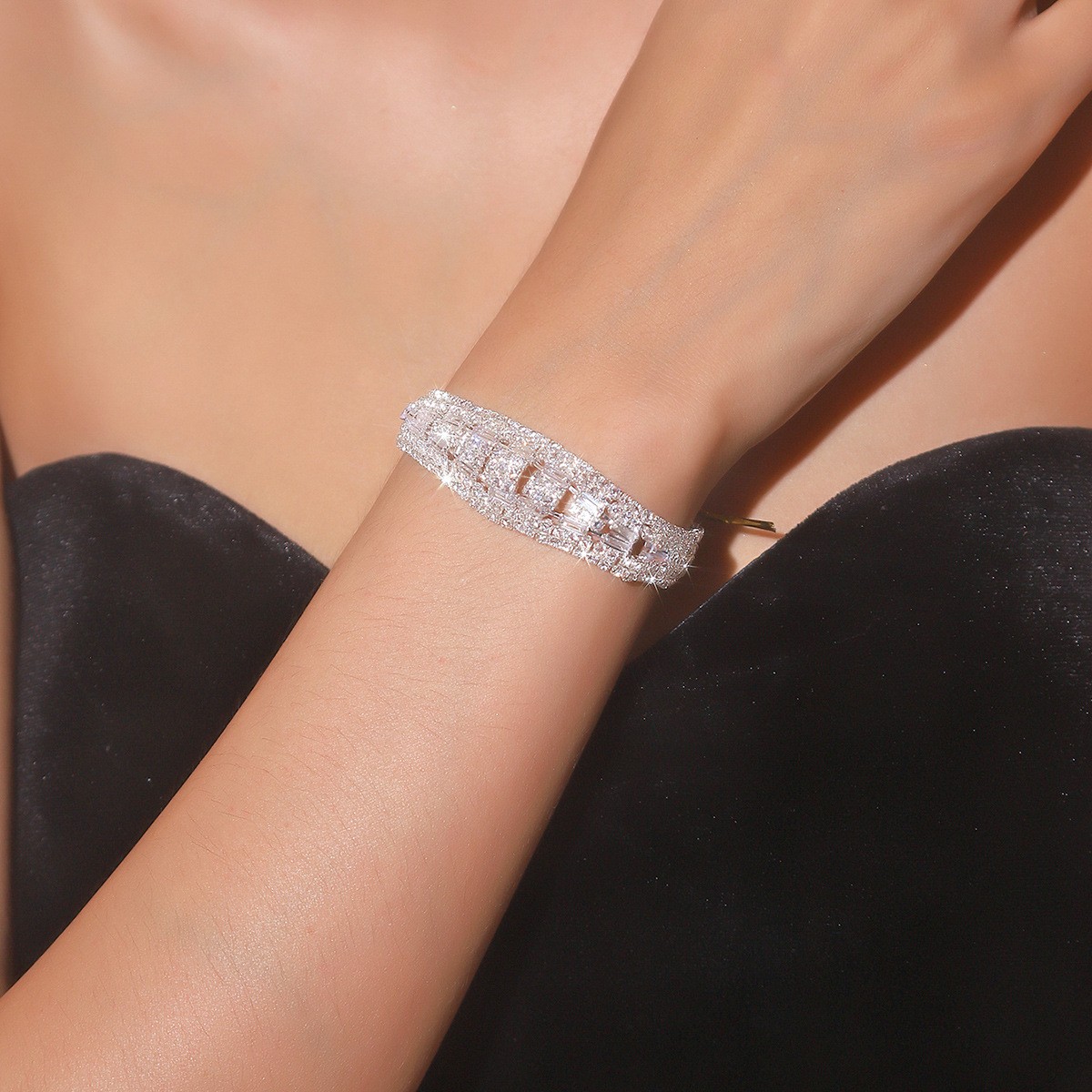 Strass bracelets de cuivre, laiton, Placage de couleur argentée, avec strass 4mm pouce, Vendu par brin
