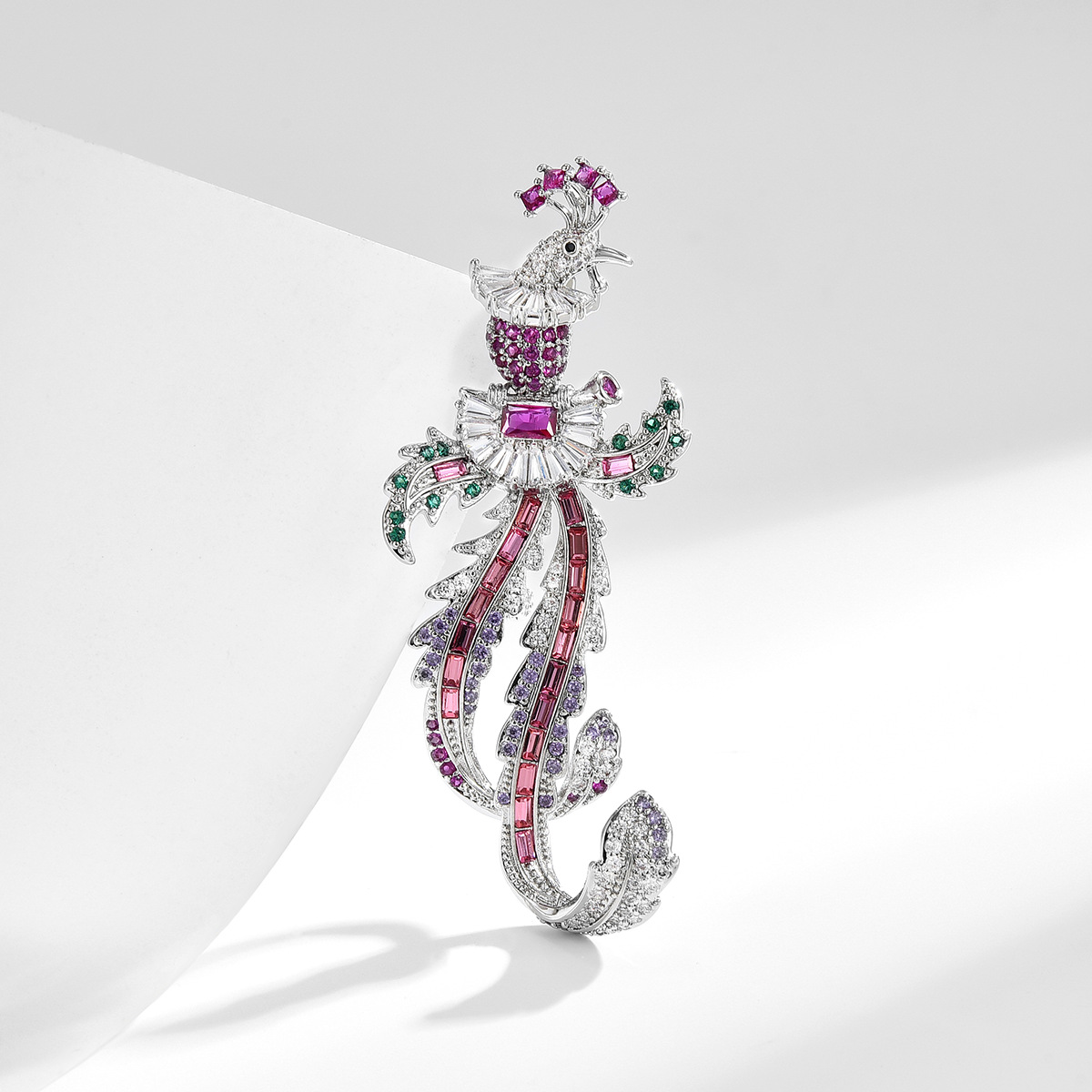 laiton broche, Placage, pavé de micro zircon & pour femme, argent, 70x28mm, Vendu par PC