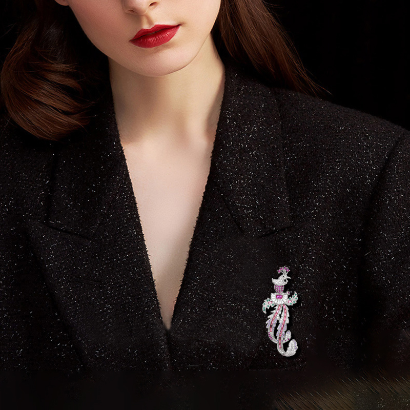 Broche de zircon cubique, laiton, fleur, Plaqué de platine, avec zircone cubique, plus de couleurs à choisir Vendu par PC