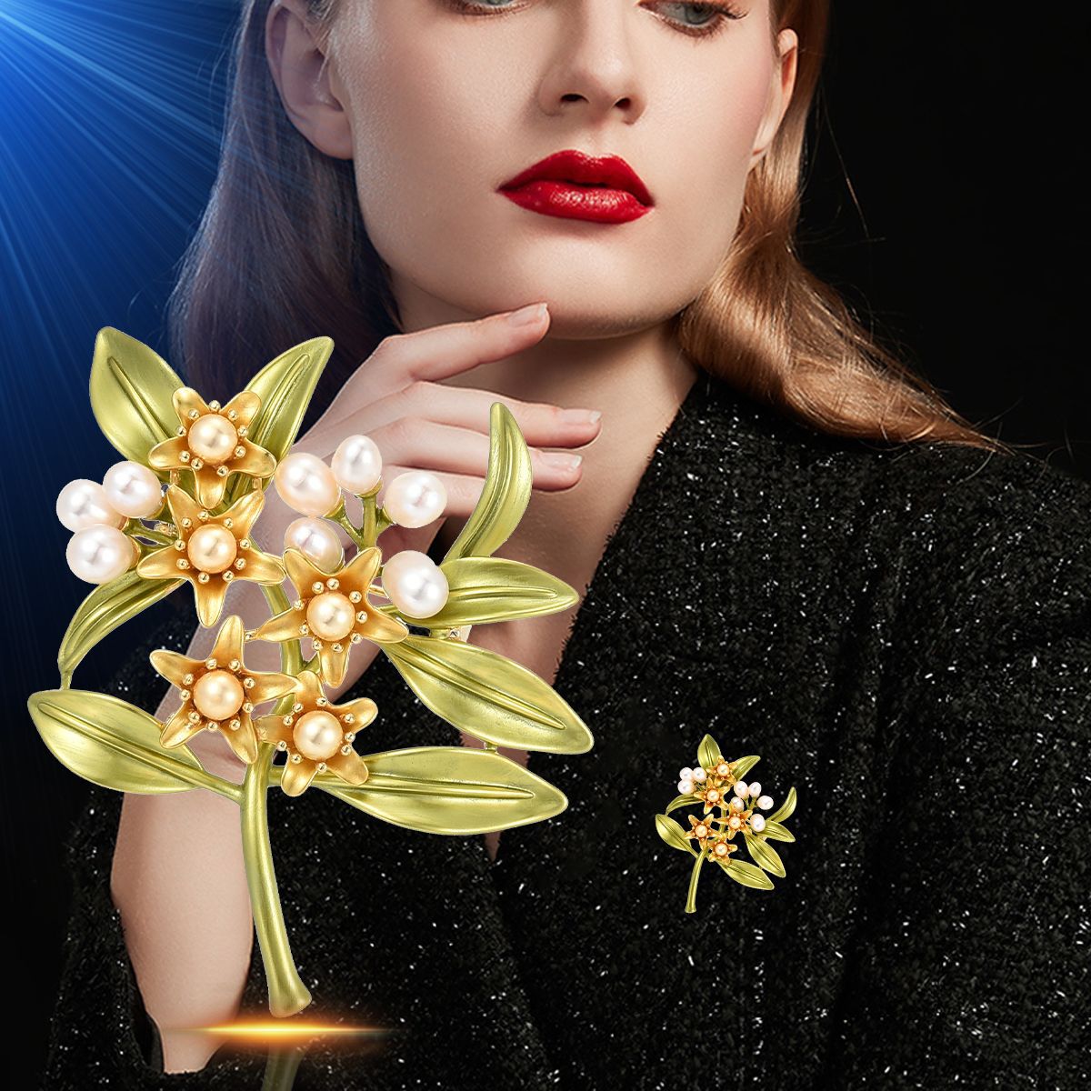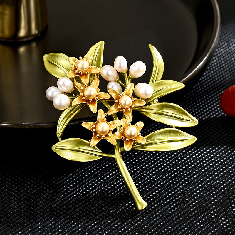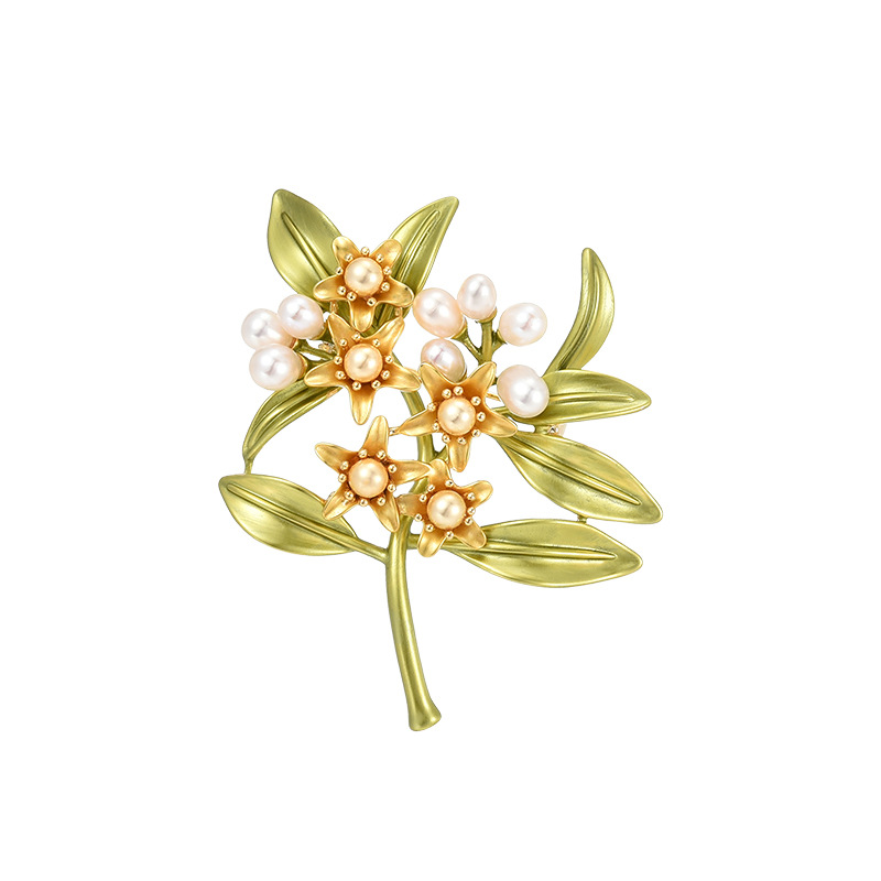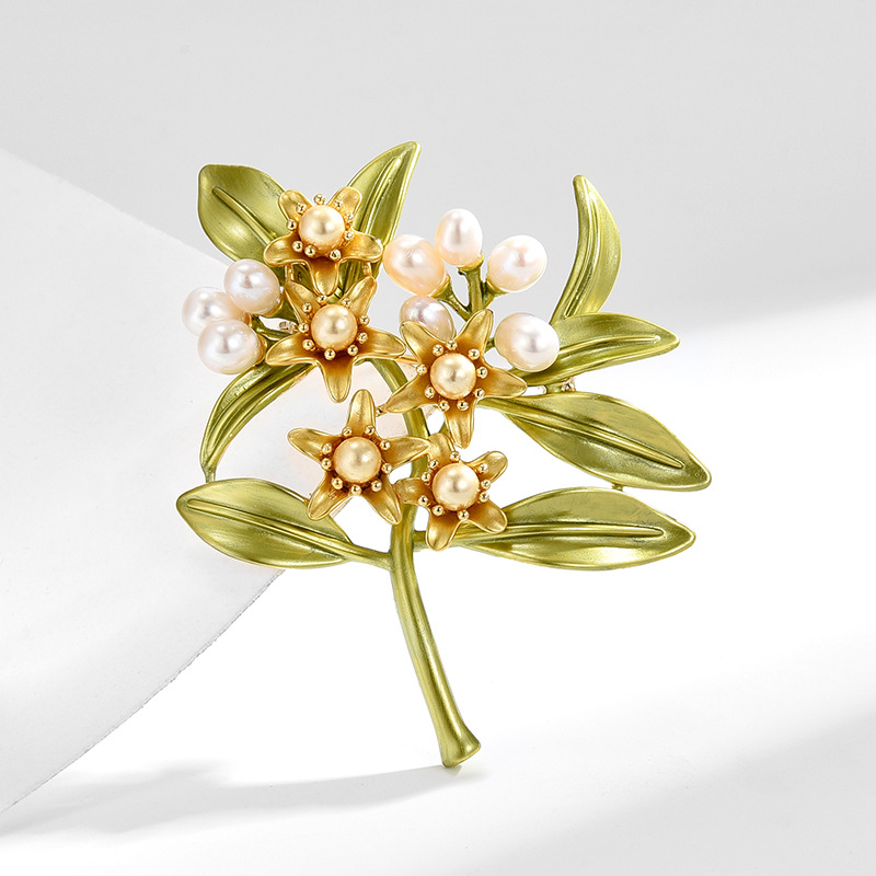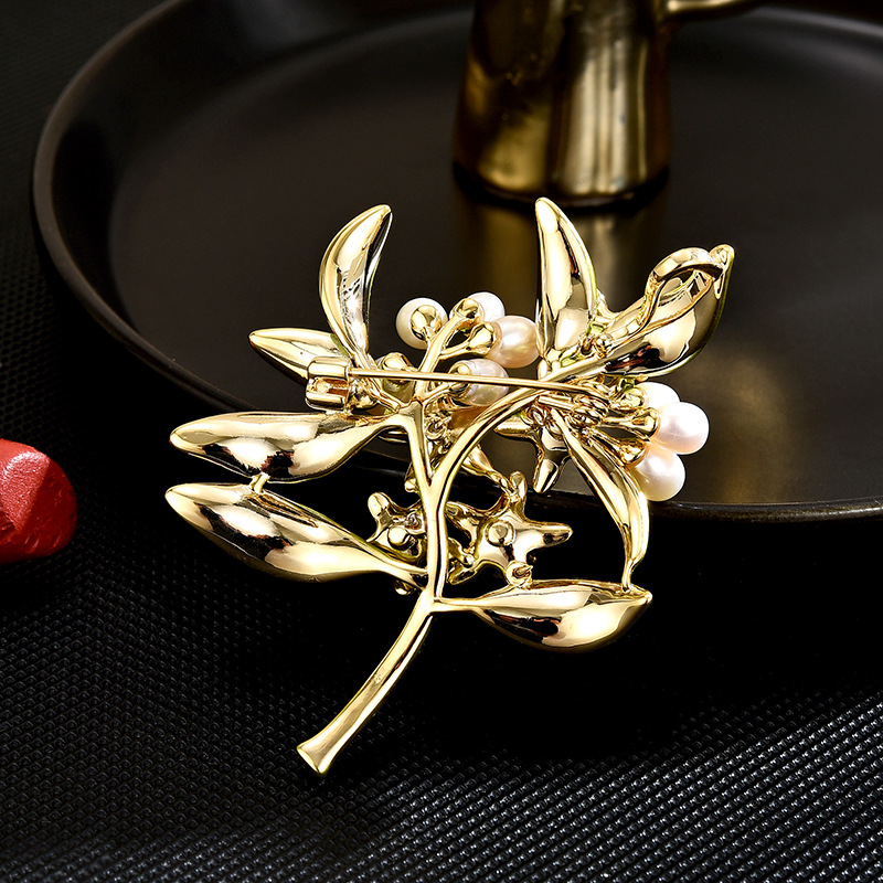 laiton broche, avec perle d'eau douce cultivée, Placage, pour femme & émail, doré, 58x46mm, Vendu par PC