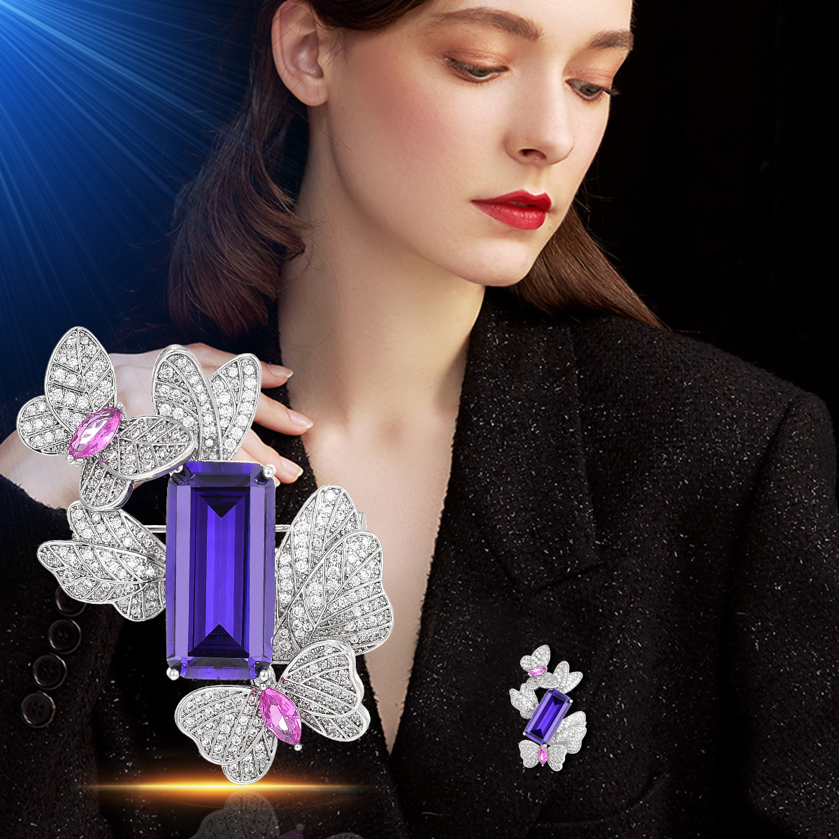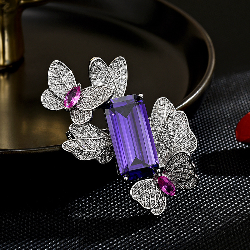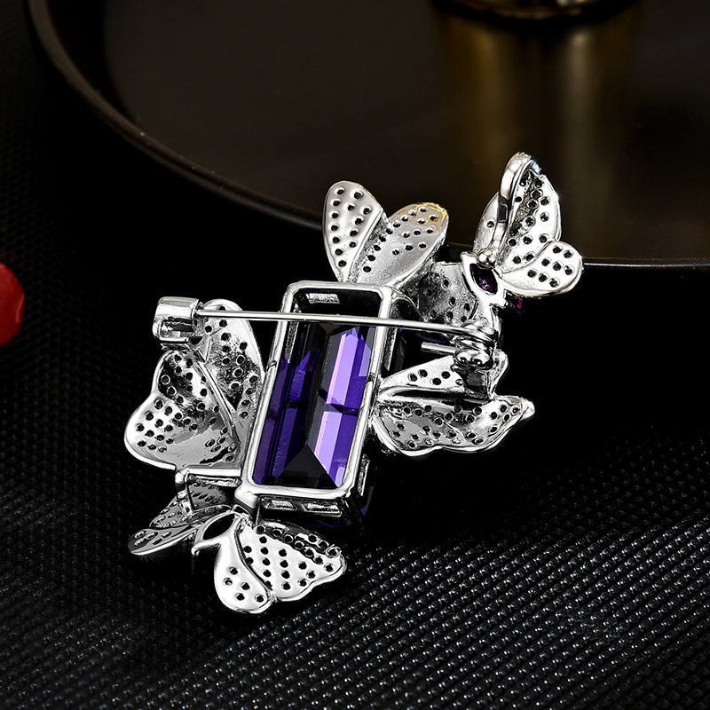 Broche de zircon cubique, laiton, Noeud papillon, Plaqué de platine, pavé de micro zircon Vendu par PC