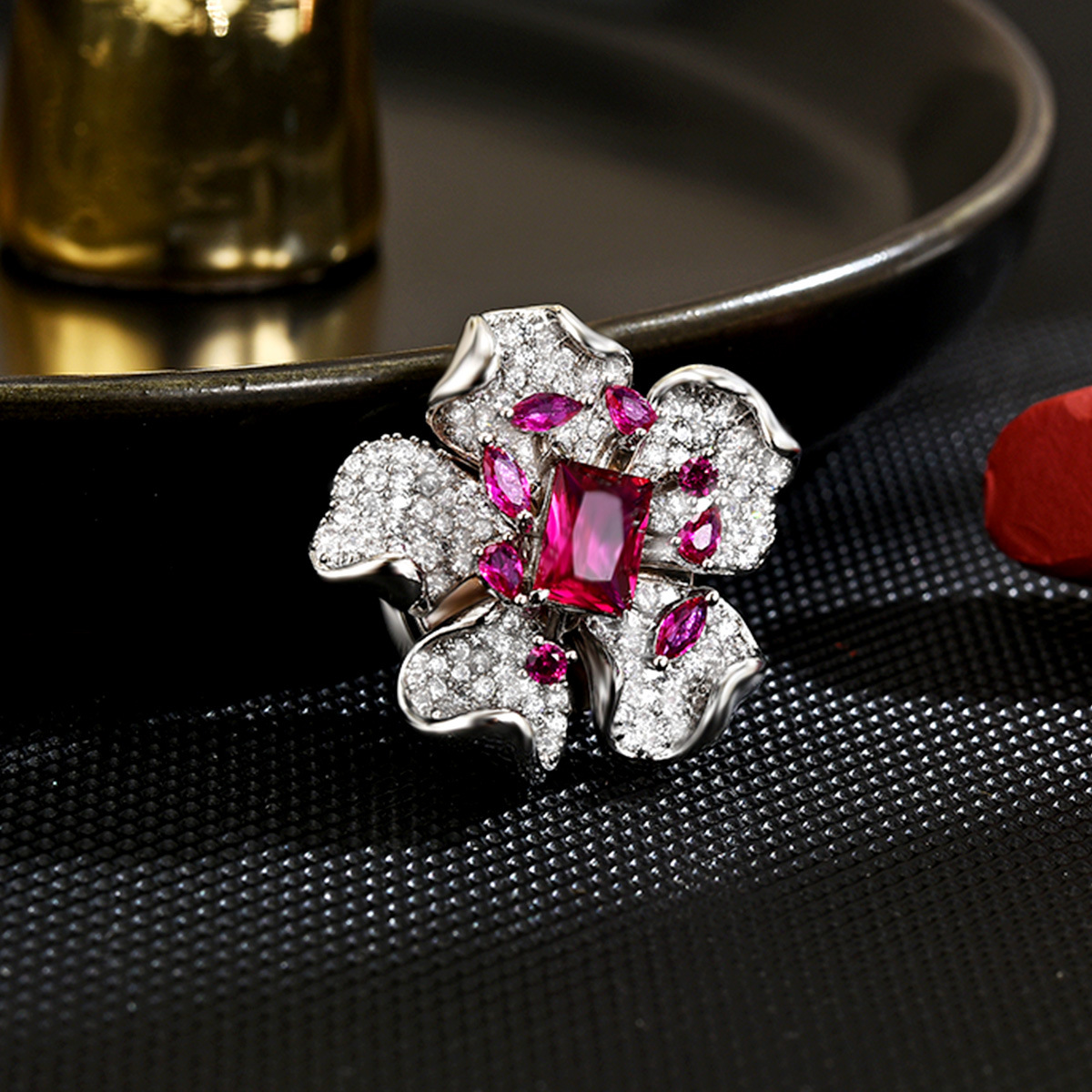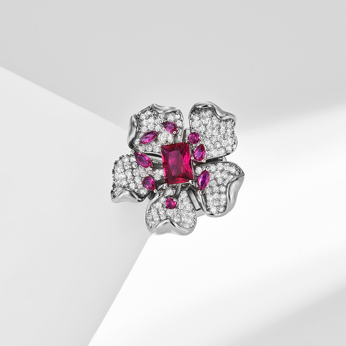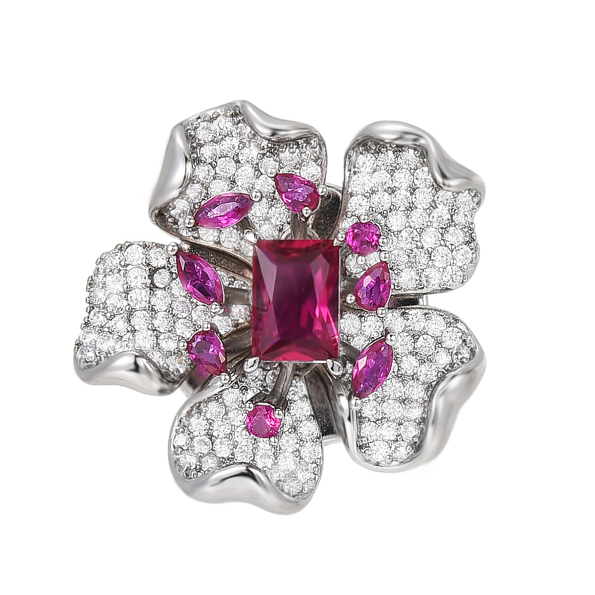 Broche de zircon cubique, laiton, fleur, Plaqué de platine, avec zircone cubique, plus de couleurs à choisir Vendu par PC