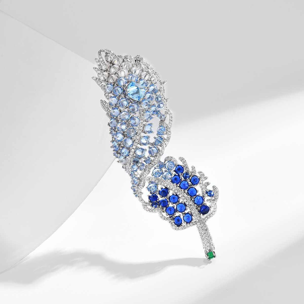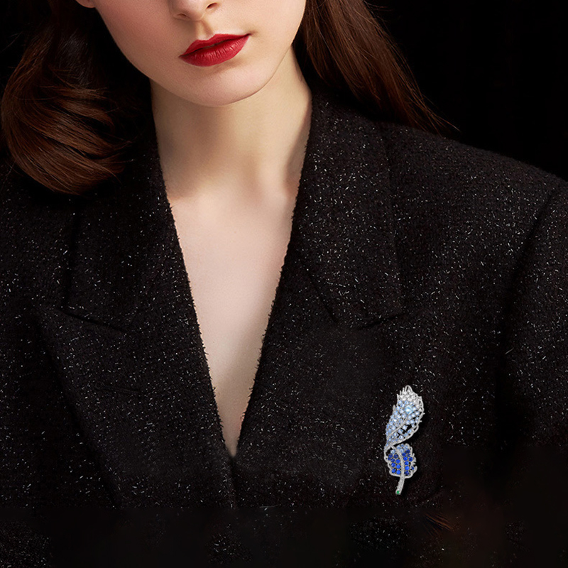 Broche de zircon cubique, laiton, fleur, Plaqué de platine, avec zircone cubique, plus de couleurs à choisir Vendu par PC
