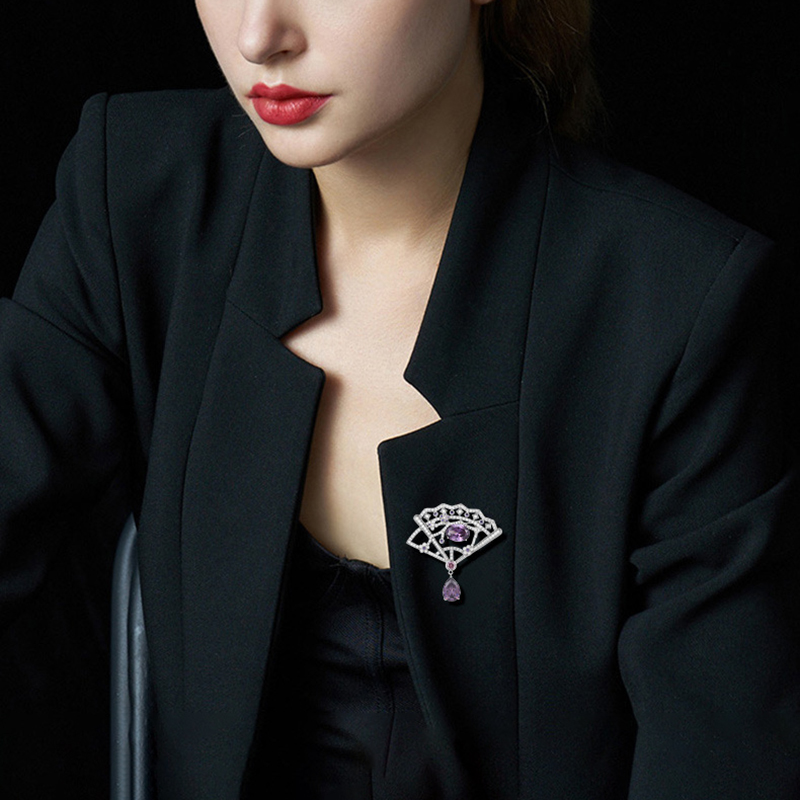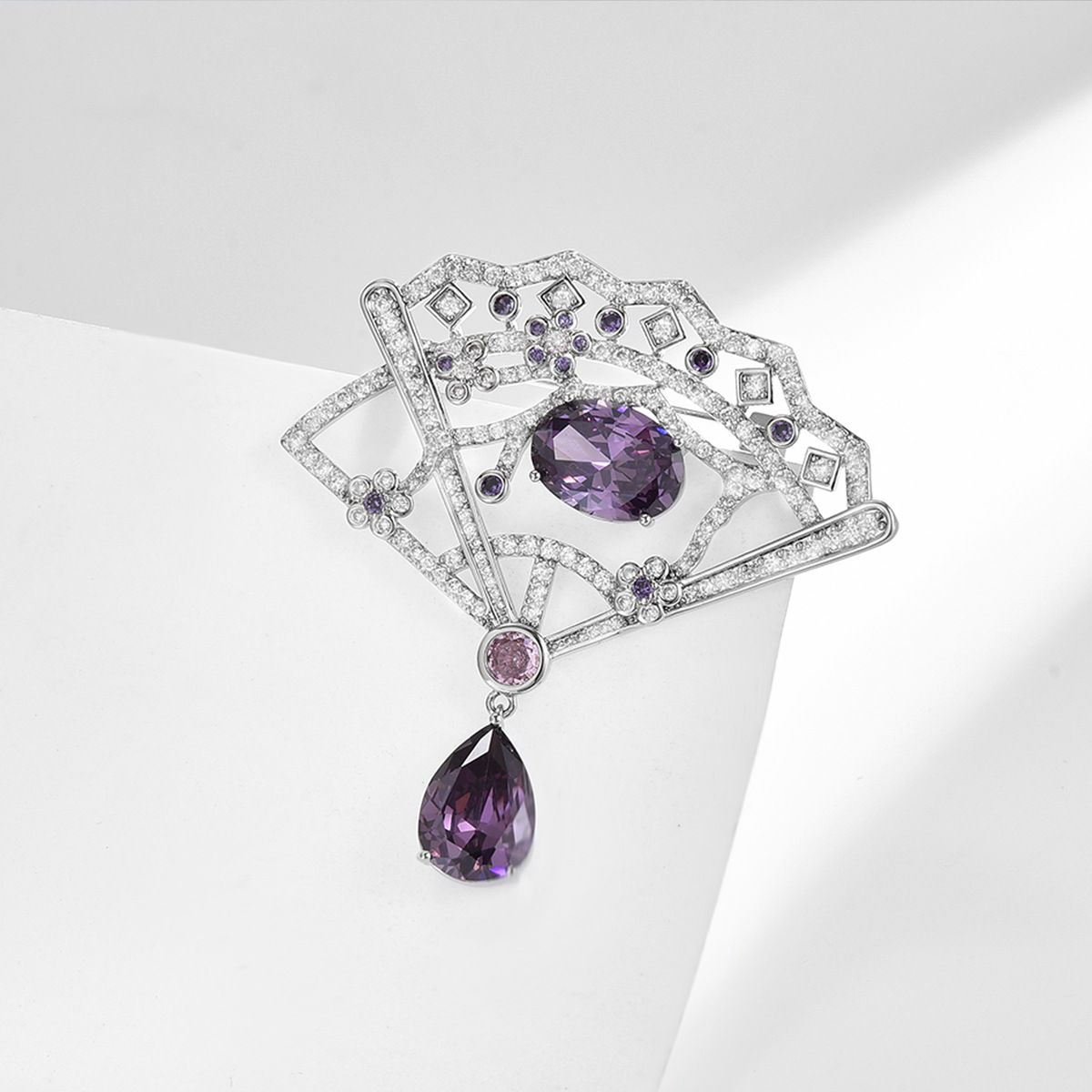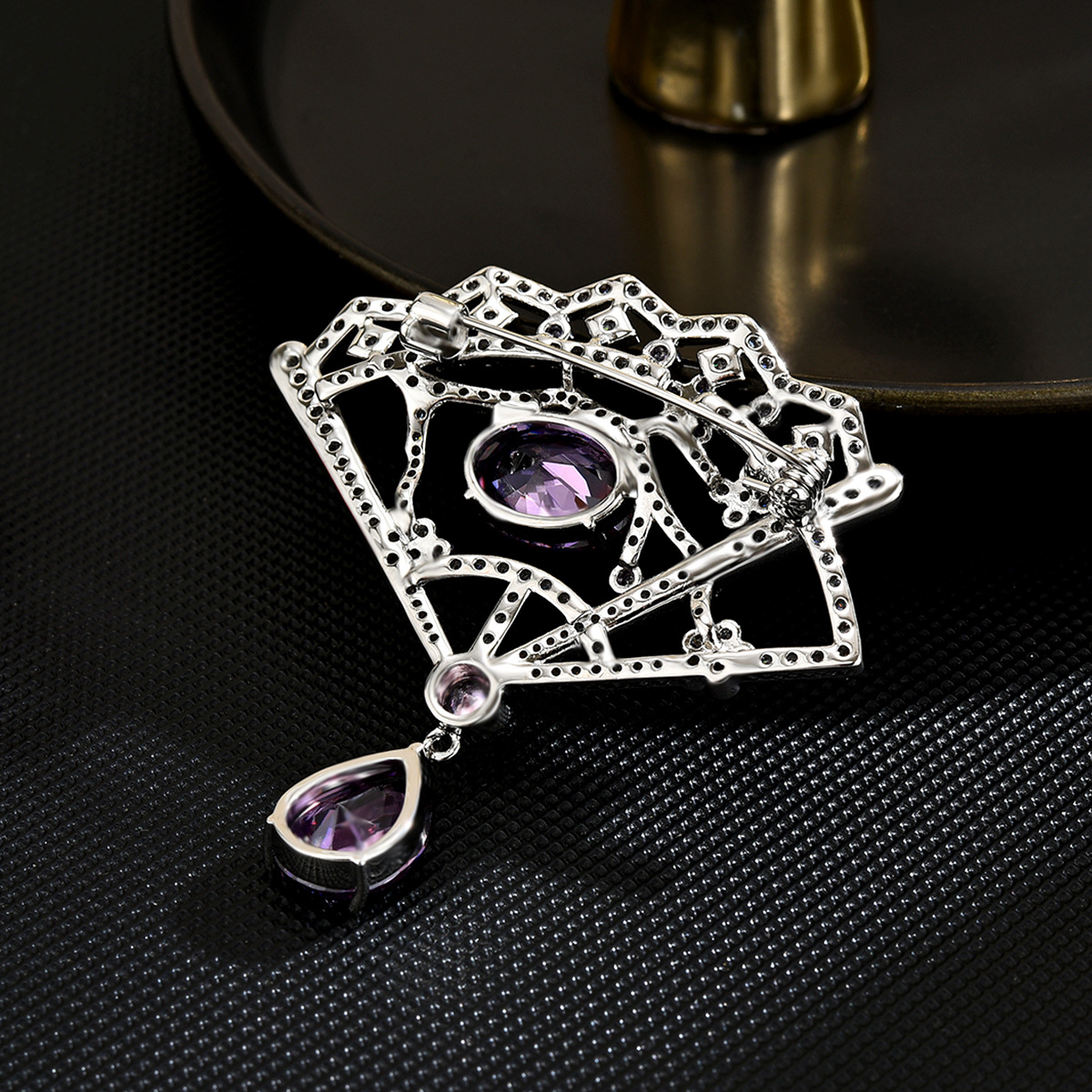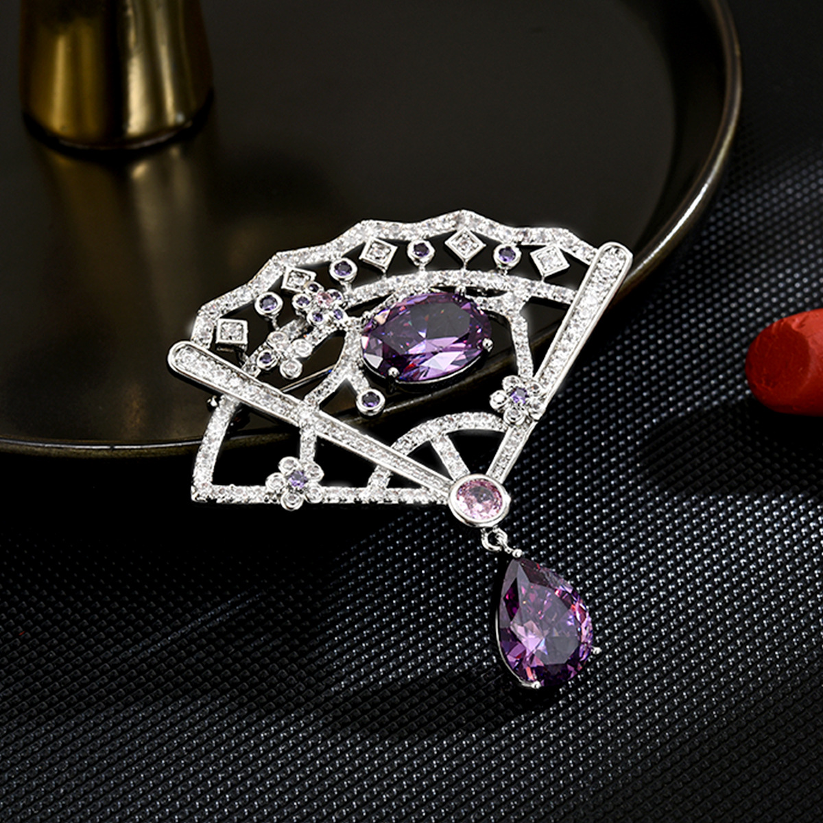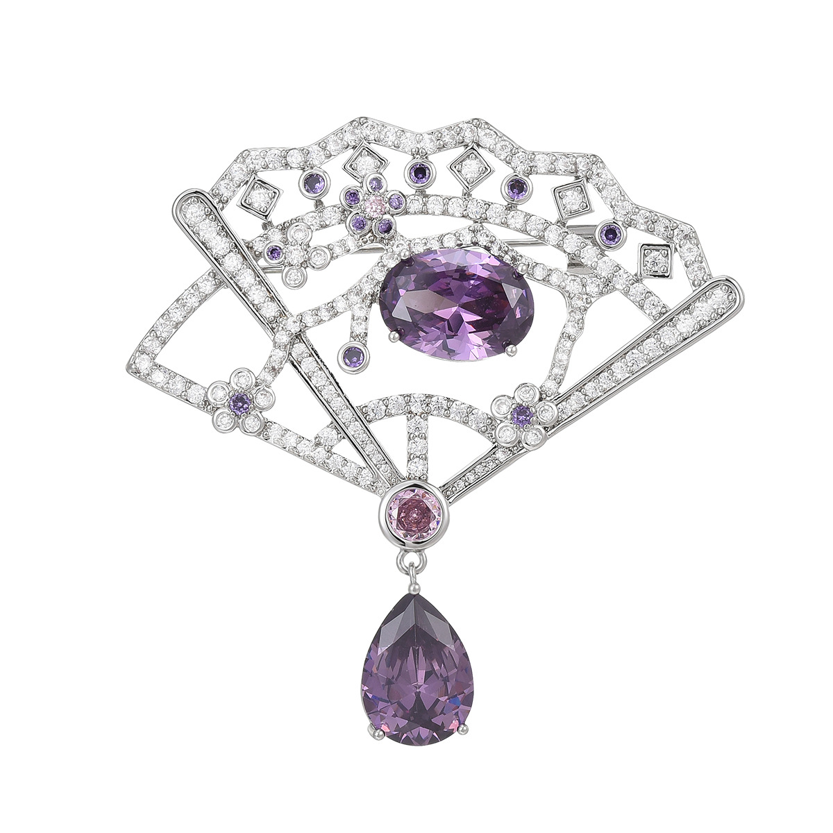 laiton broche, Placage, pavé de micro zircon & pour femme, argent, 55x54mm, Vendu par PC