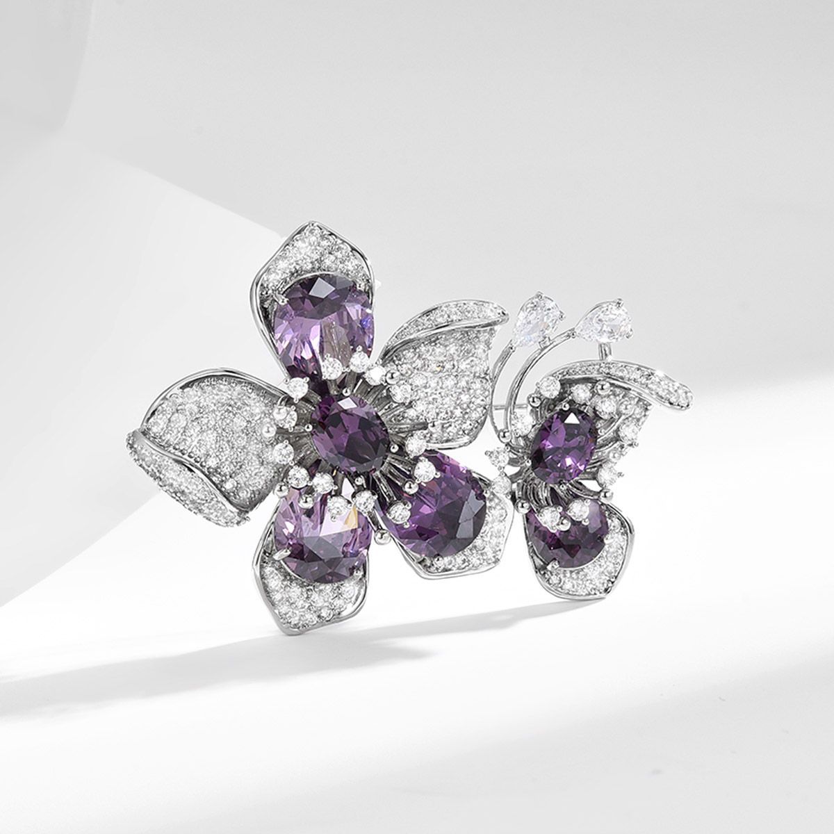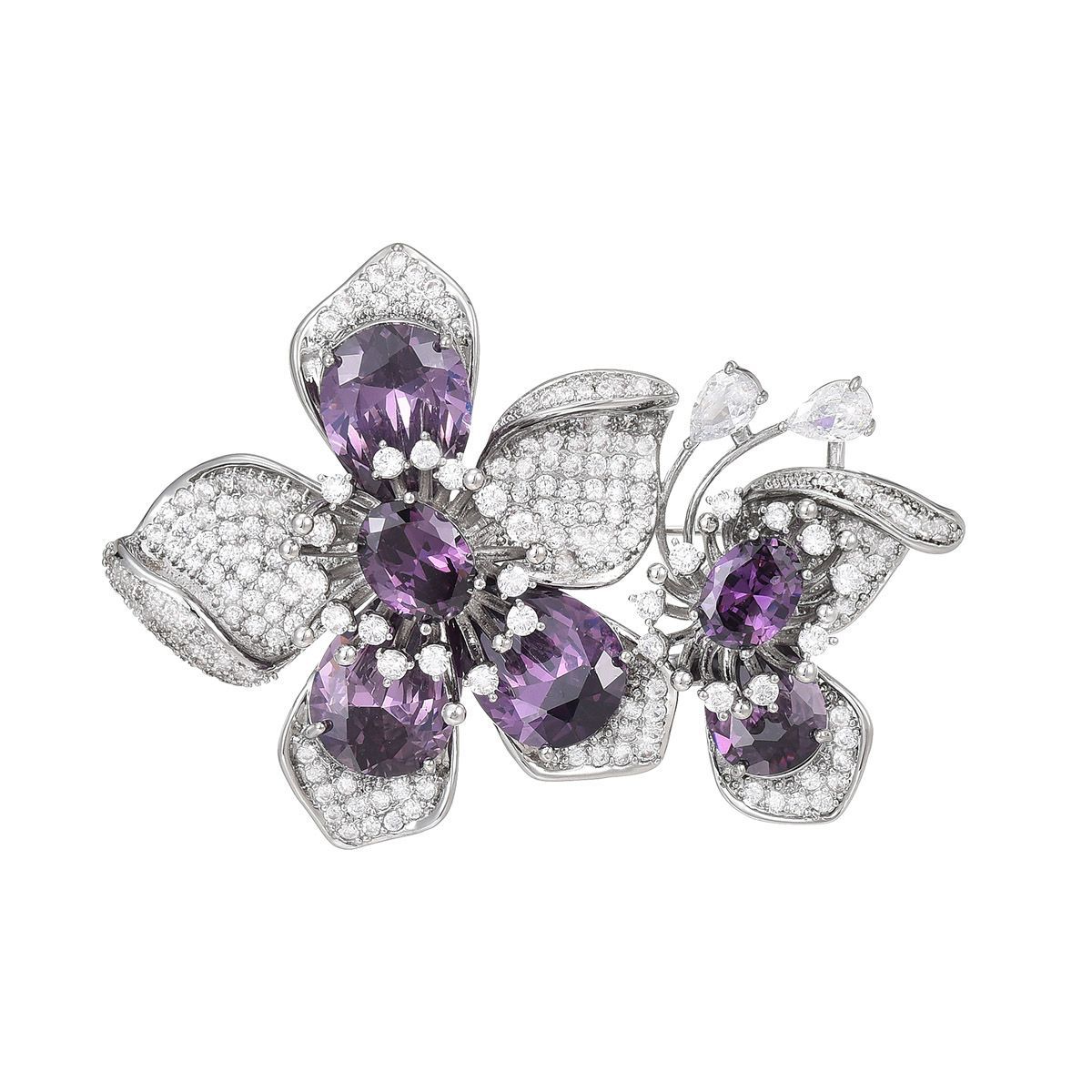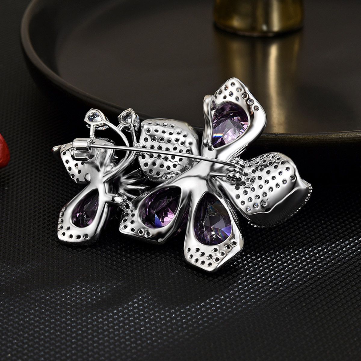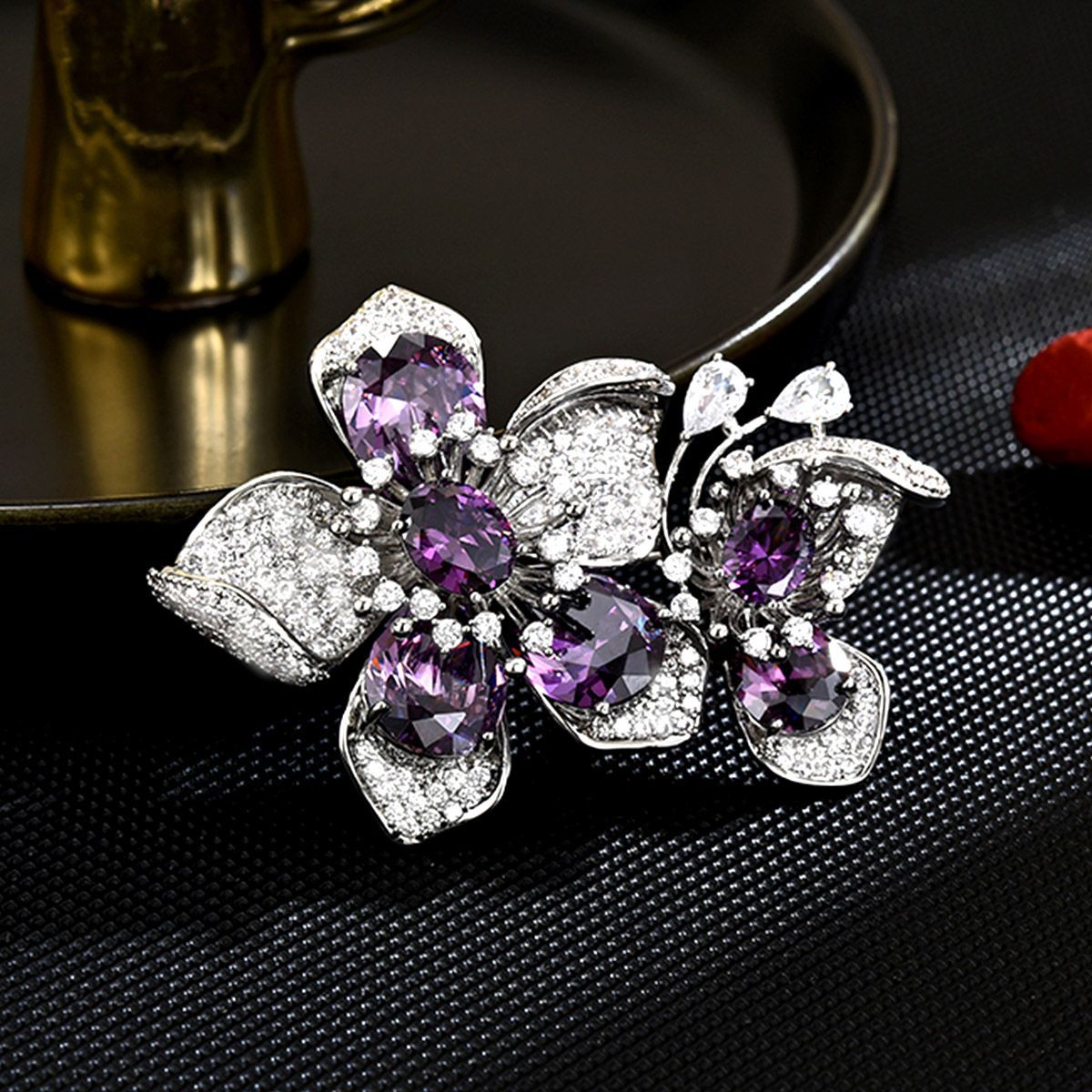 Broche de zircon cubique, laiton, fleur, Plaqué de platine, avec zircone cubique, plus de couleurs à choisir Vendu par PC