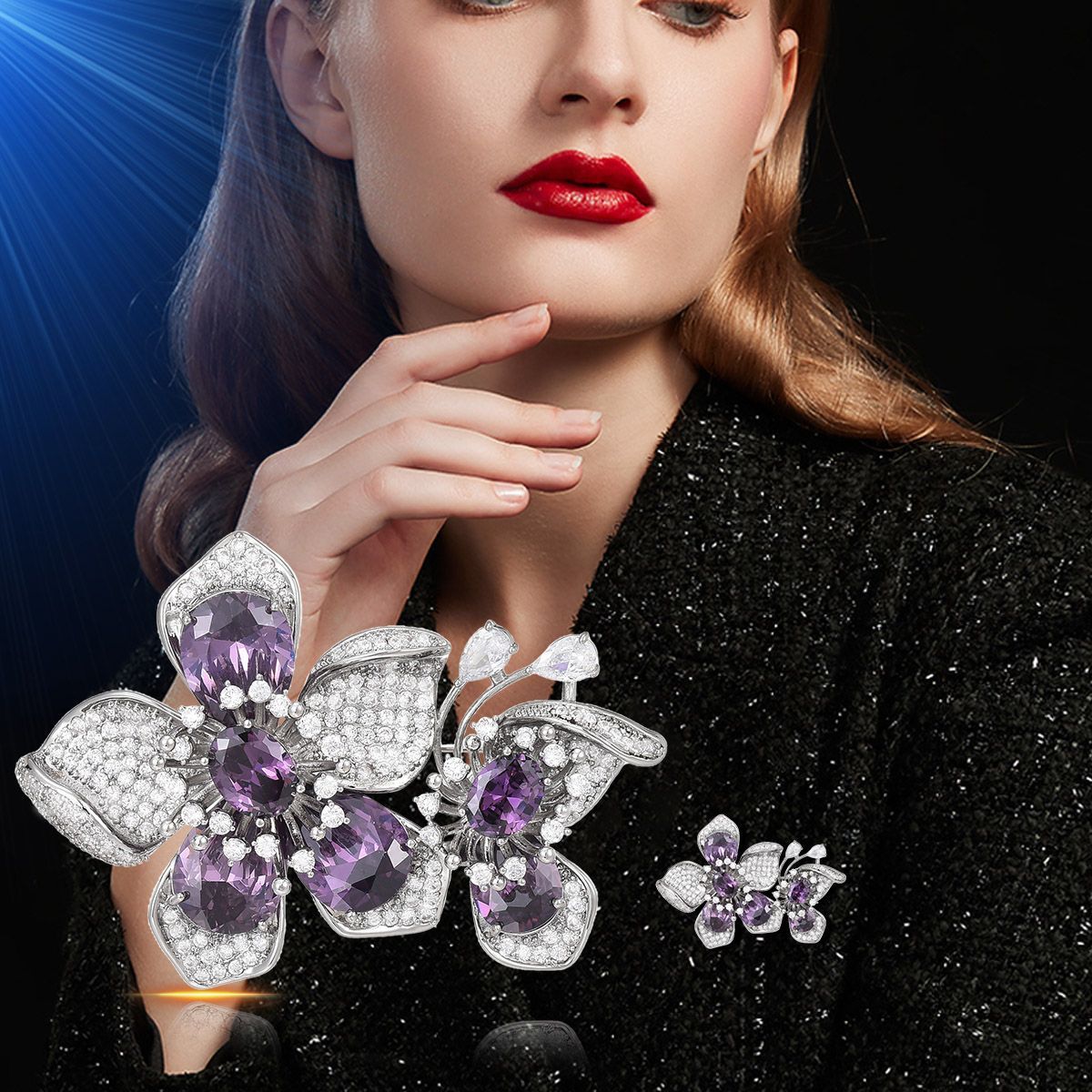 laiton broche, Placage, pavé de micro zircon & pour femme, argent, 39x55mm, Vendu par PC