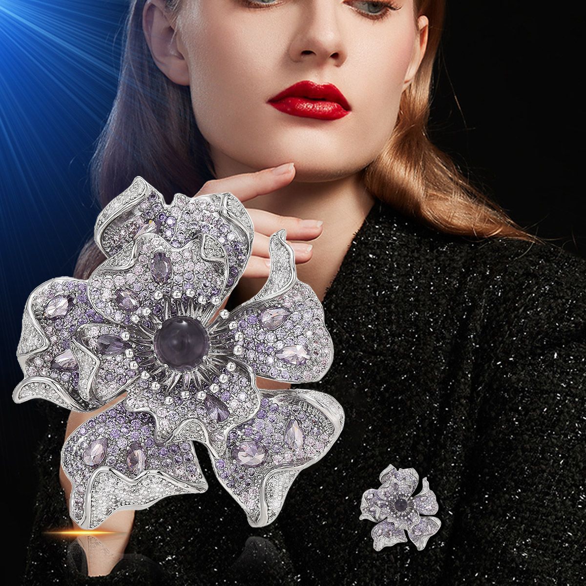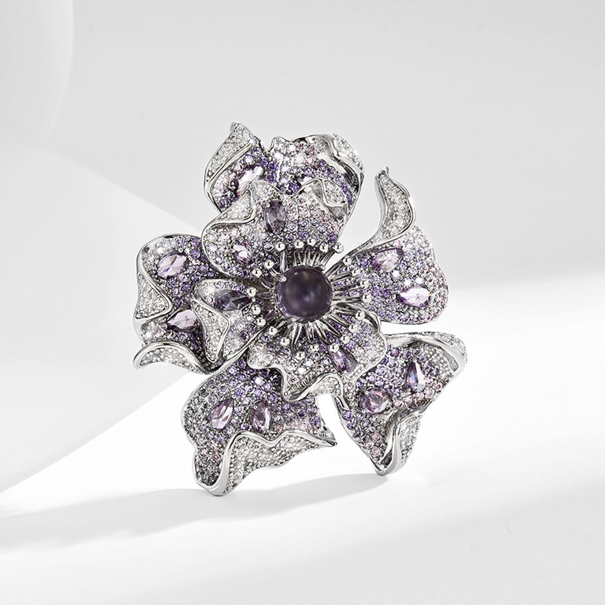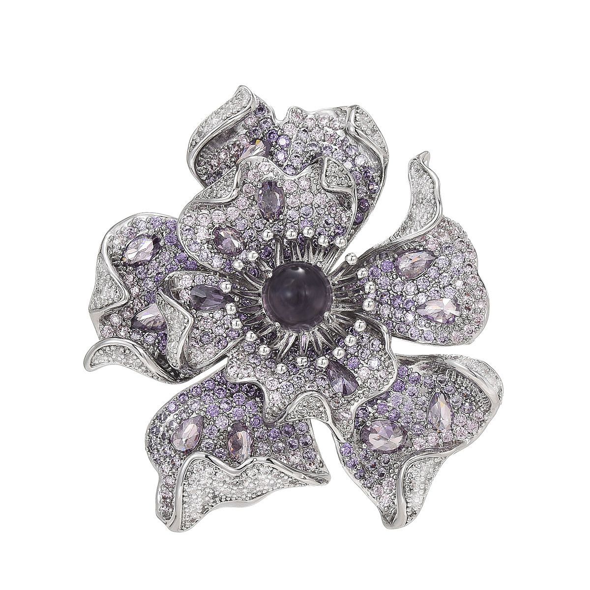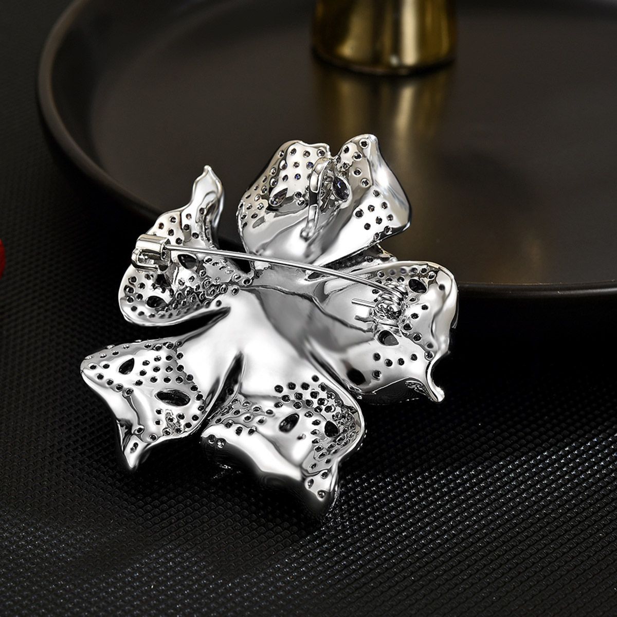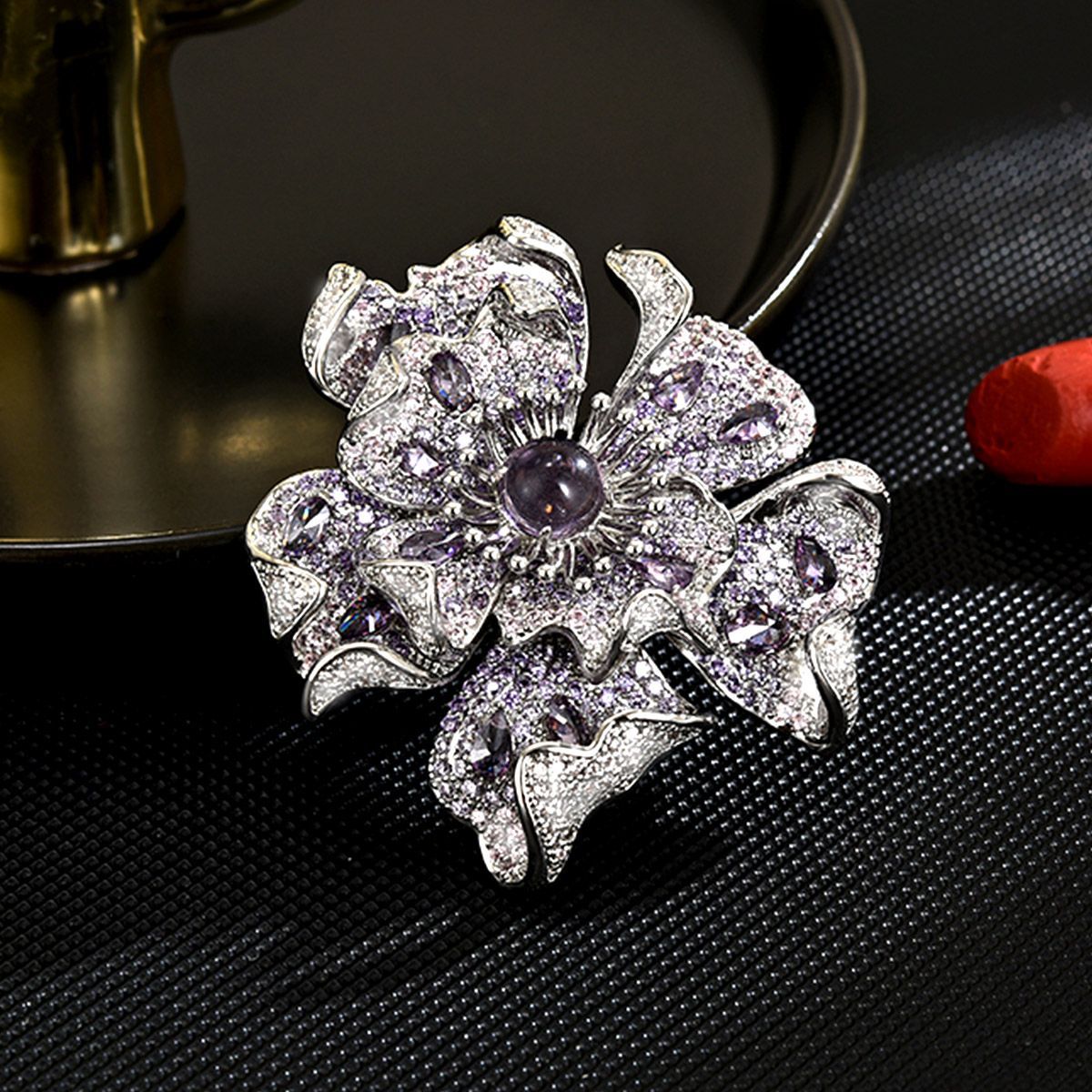 Broche de zircon cubique, laiton, fleur, Plaqué de platine, avec zircone cubique, plus de couleurs à choisir Vendu par PC