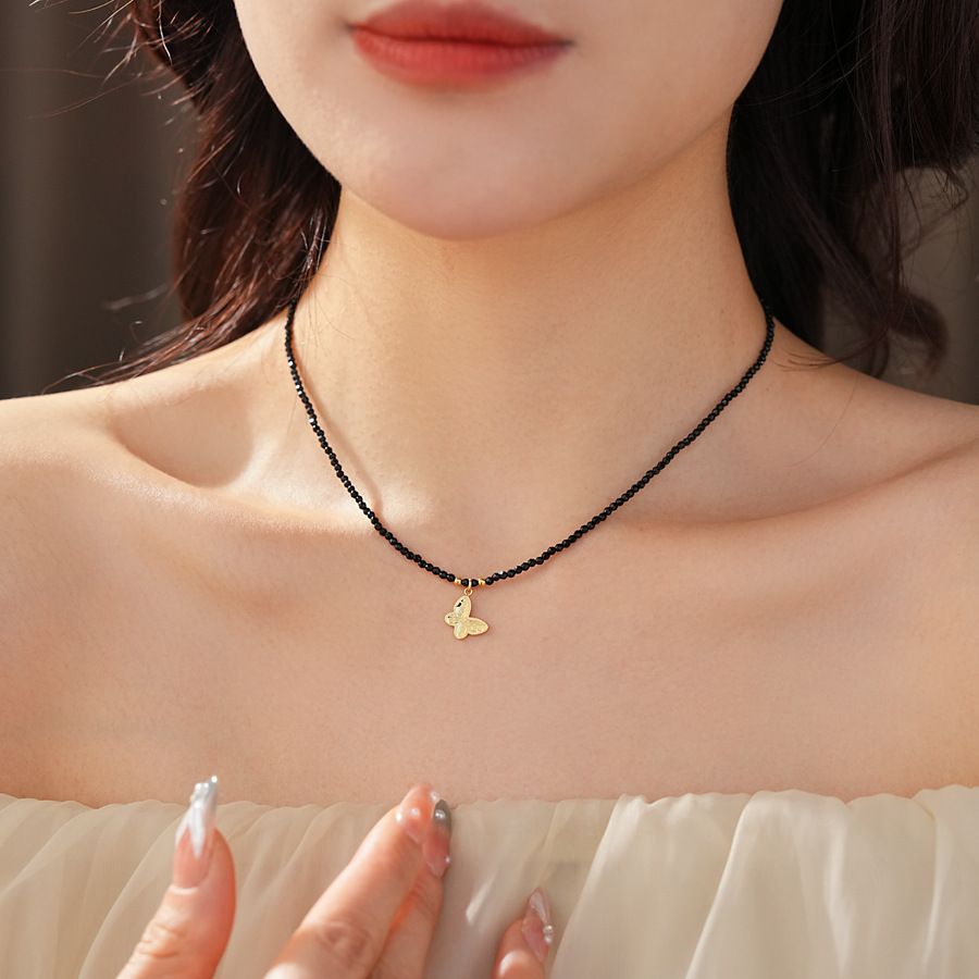 laiton collier, avec cristal, avec 3.3inch chaînes de rallonge, papillon, fait à la main, bijoux de mode & pour femme, Longueur:Environ 14.4 pouce, Vendu par PC