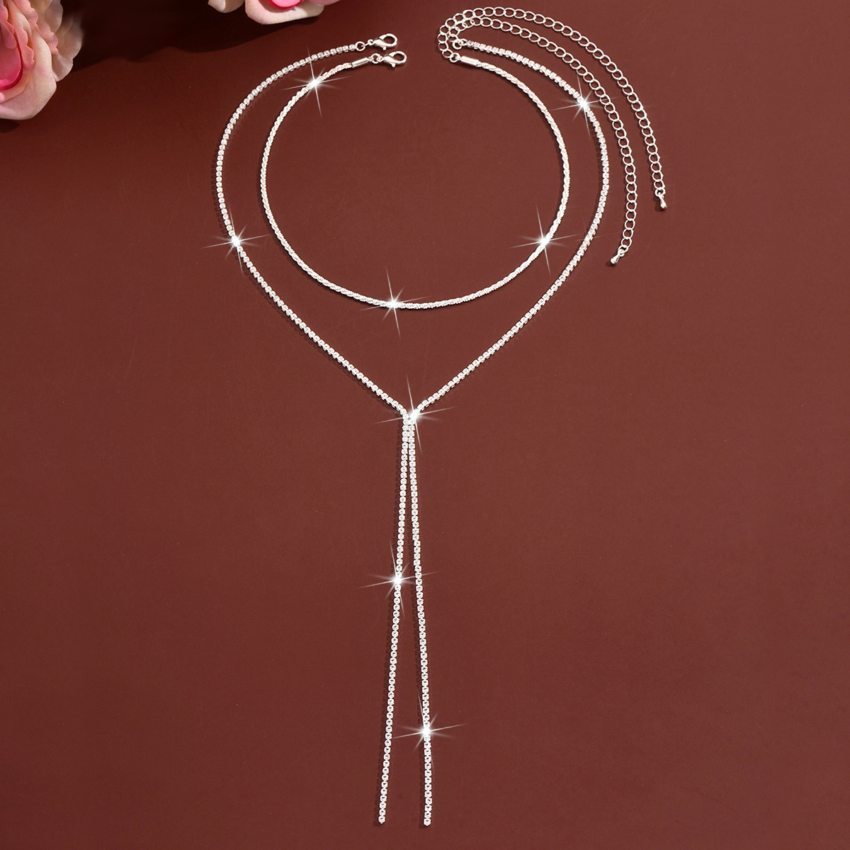 laiton collier, Placage de couleur argentée, pour femme & avec strass, Vendu par PC
