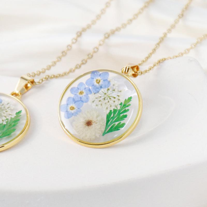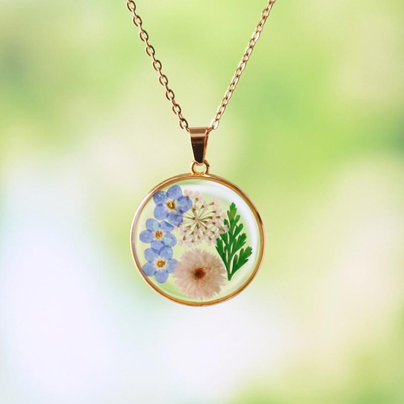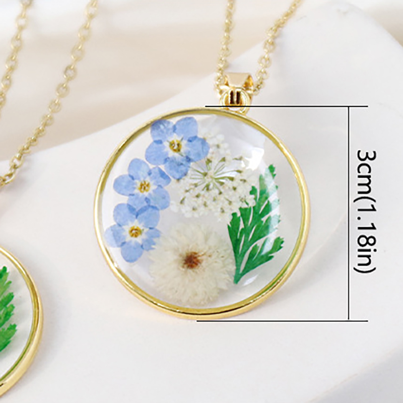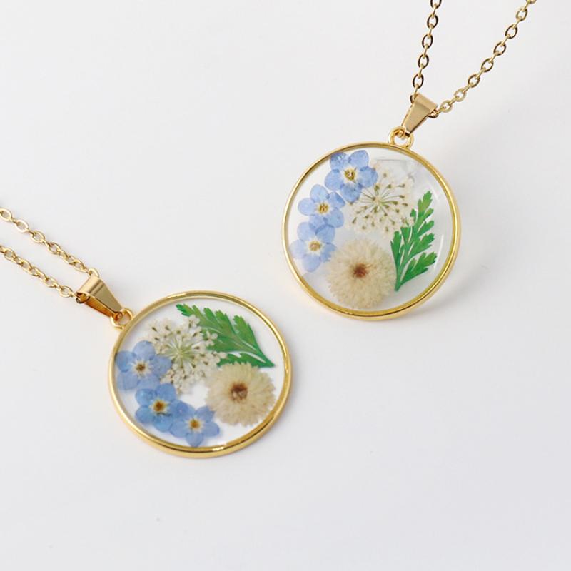 laiton collier, avec 304 chaîne en acier inoxydable & Fleurs séchées & résine, goutté d'époxy, bijoux de mode & pour femme, doré, Longueur:Environ 45 cm, 6PC/sac, Vendu par sac