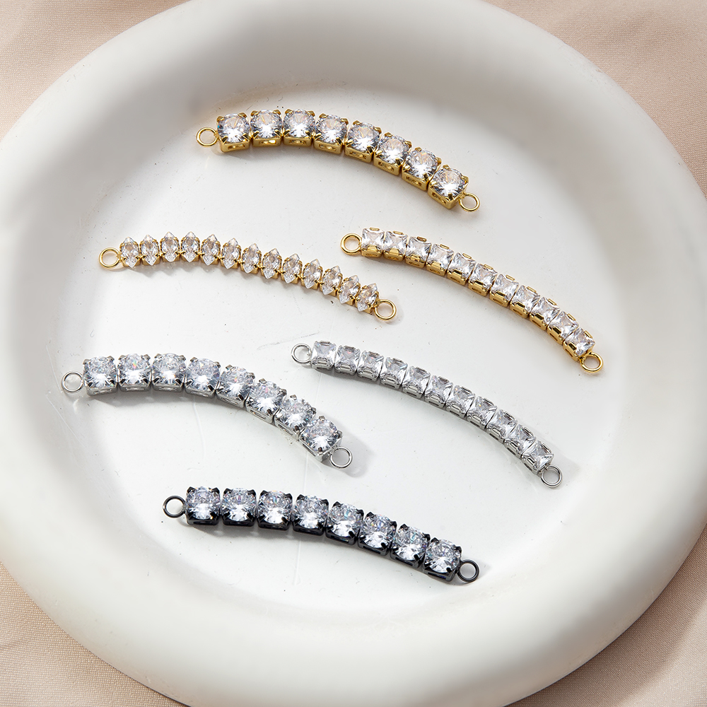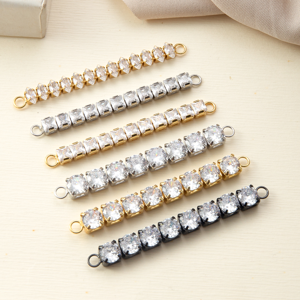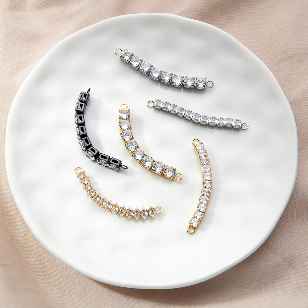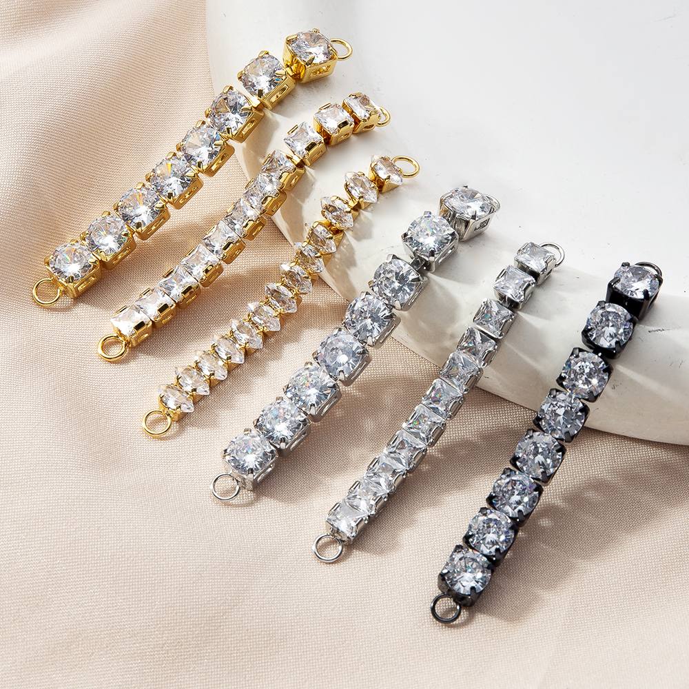 laiton connecteur, Placage, DIY & pavé de micro zircon, plus de couleurs à choisir, protéger l'environnement, sans nickel, plomb et cadmium, 58x5.2x6mm, Vendu par PC