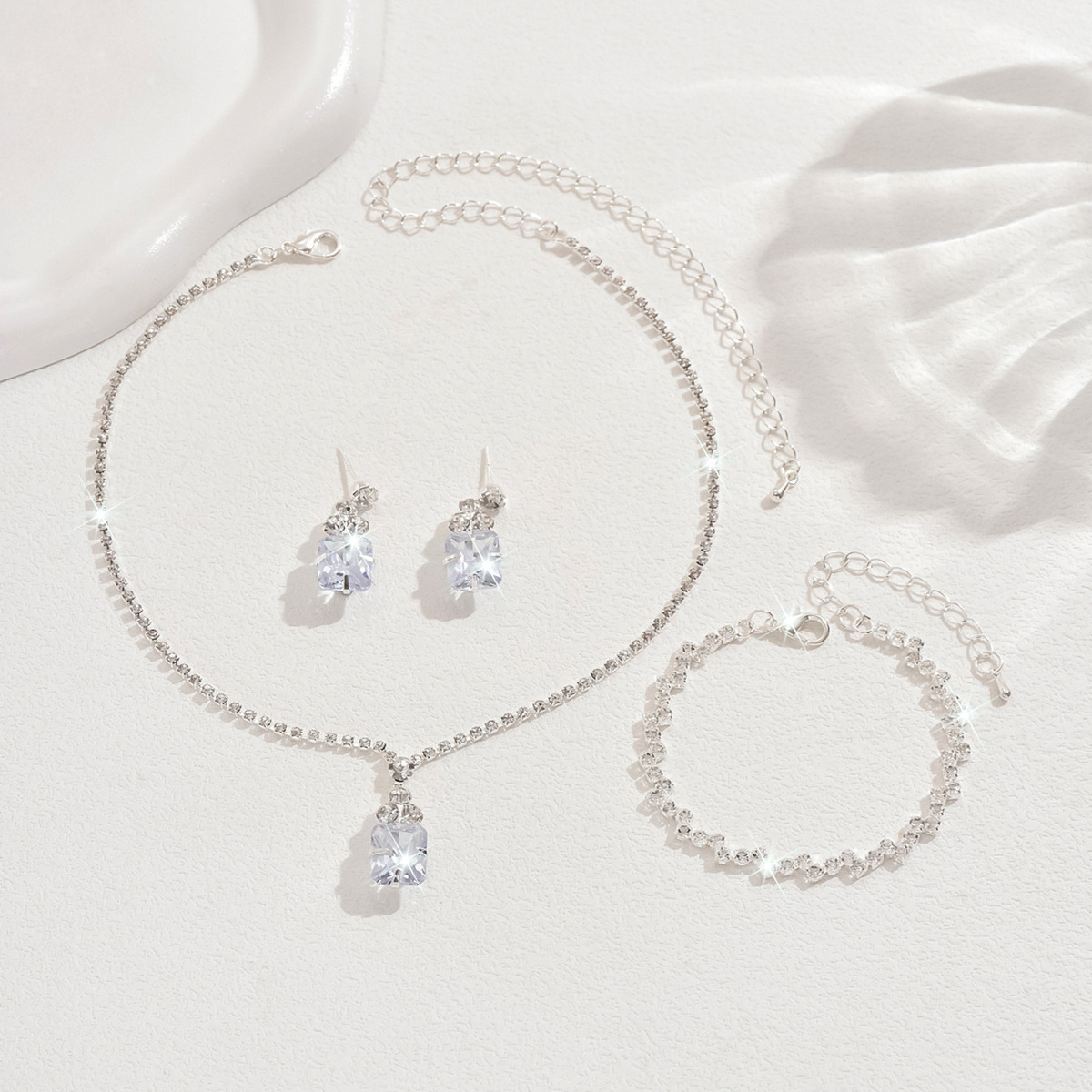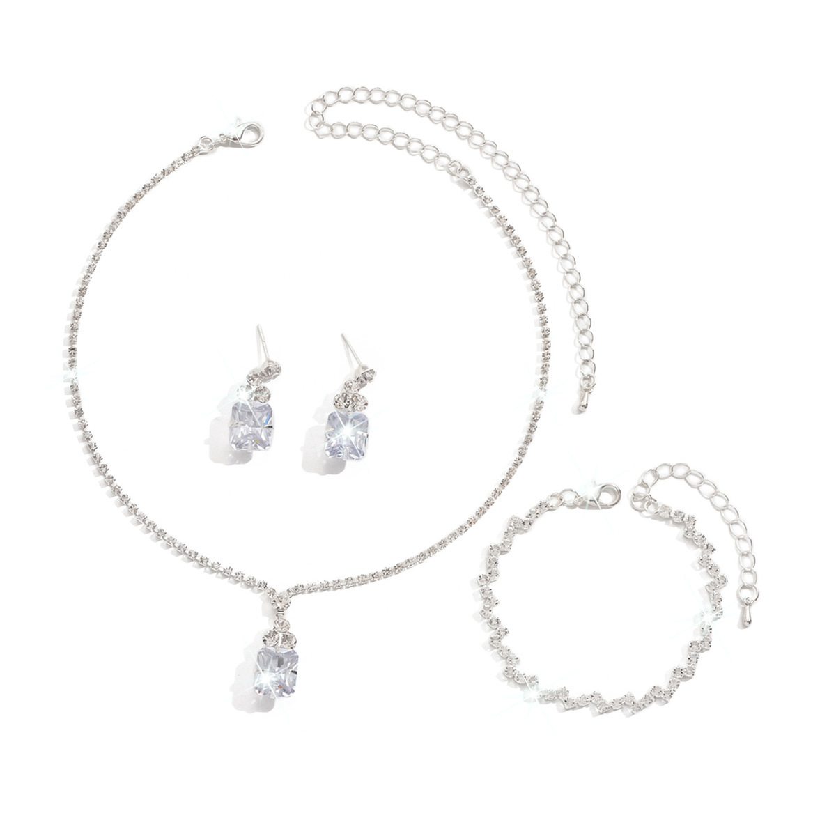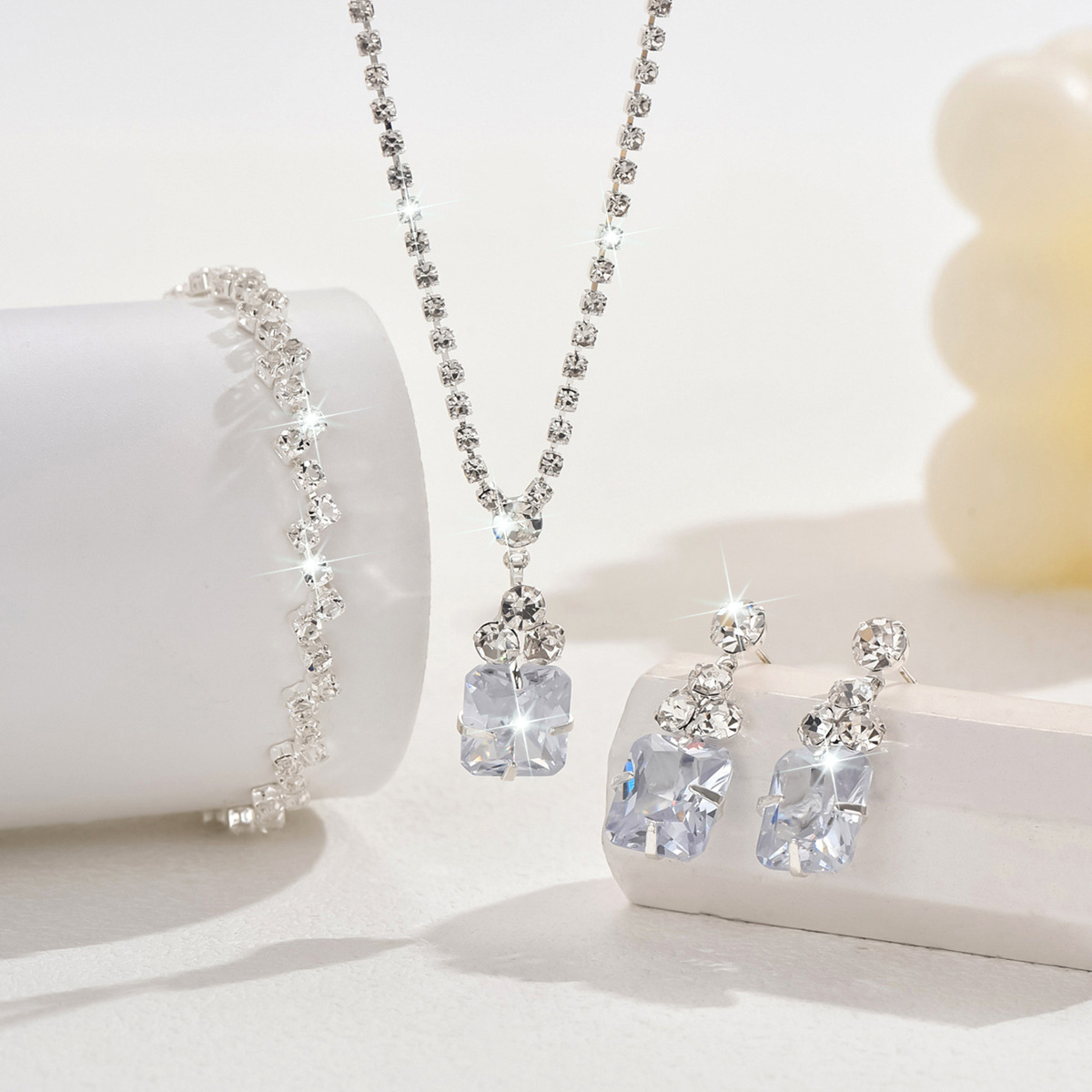Zircon cubique Micro Pave parures de bijoux en laiton, Bracelet & boucle d'oreille & collier, laiton fermoir homard, laiton puce boucle d'oreille, Licorne, Placage, pavé de micro zircon & pour femme, argent, 42mm,27mm,42mm,27mm,19mm,30mm, Vendu par fixé