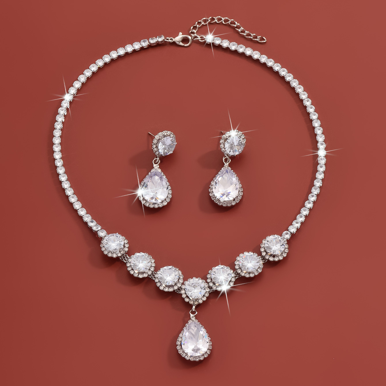 laiton parure de bijoux, boucle d'oreille & collier, larme, Placage, 2 pièces & pavé de micro zircon & pour femme, plus de couleurs à choisir, Vendu par fixé