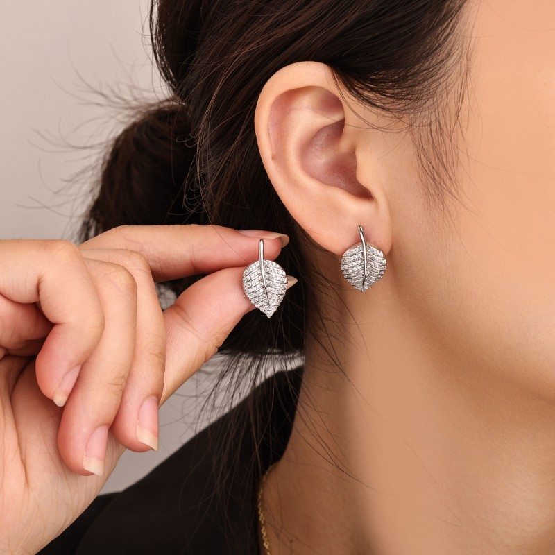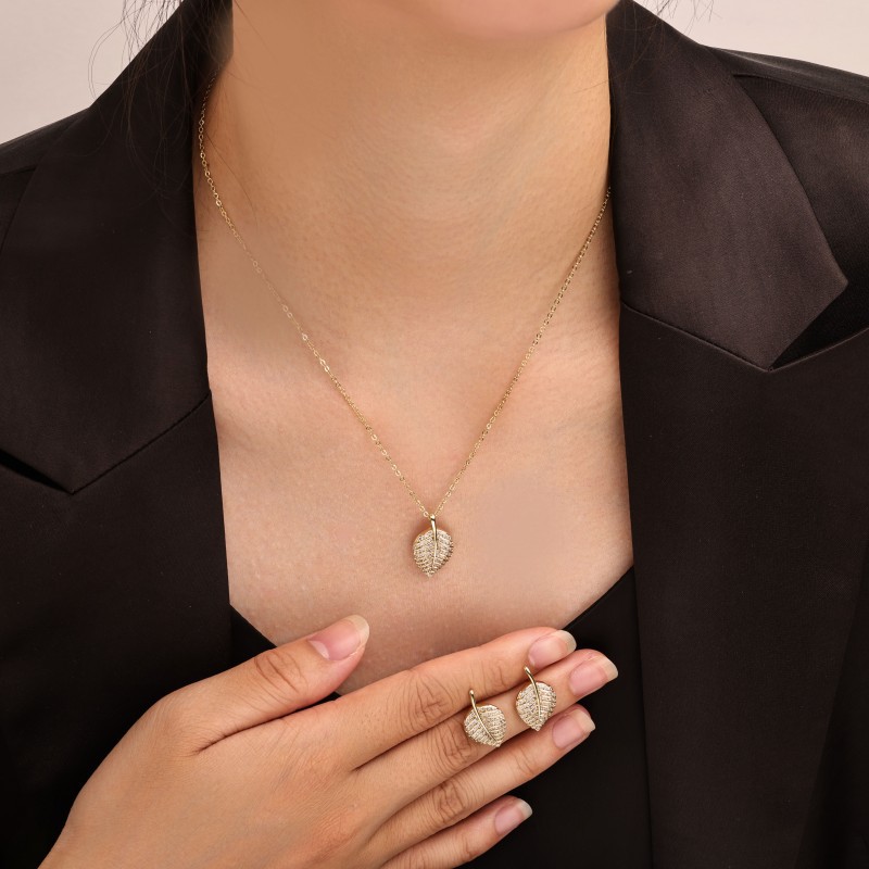 laiton parure de bijoux, Boucle d’oreille stud & collier, feuille, Placage, 2 pièces & pavé de micro zircon & pour femme, plus de couleurs à choisir, Vendu par fixé