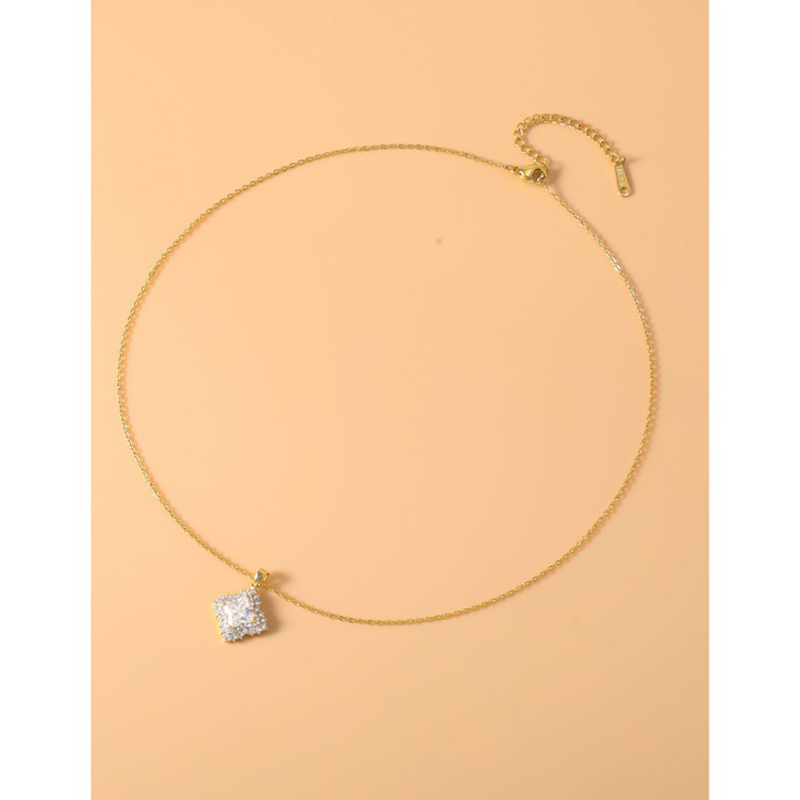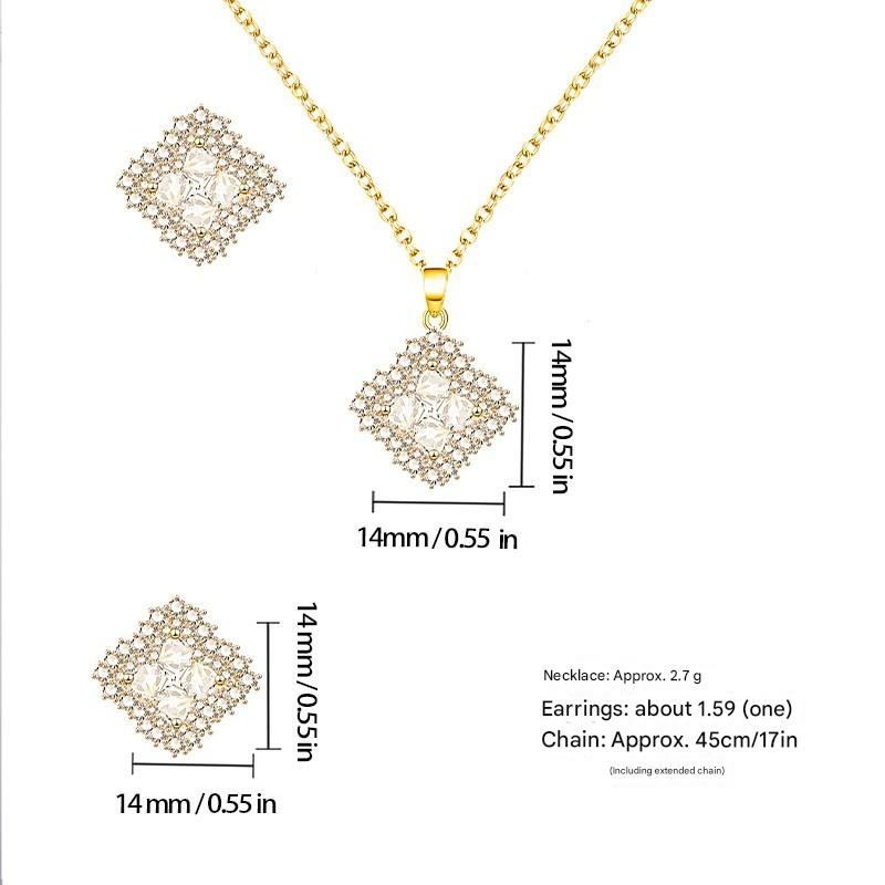 laiton parure de bijoux, Boucle d’oreille stud & collier, cadre, Placage de couleur d'or, 2 pièces & pavé de micro zircon & pour femme, Vendu par fixé