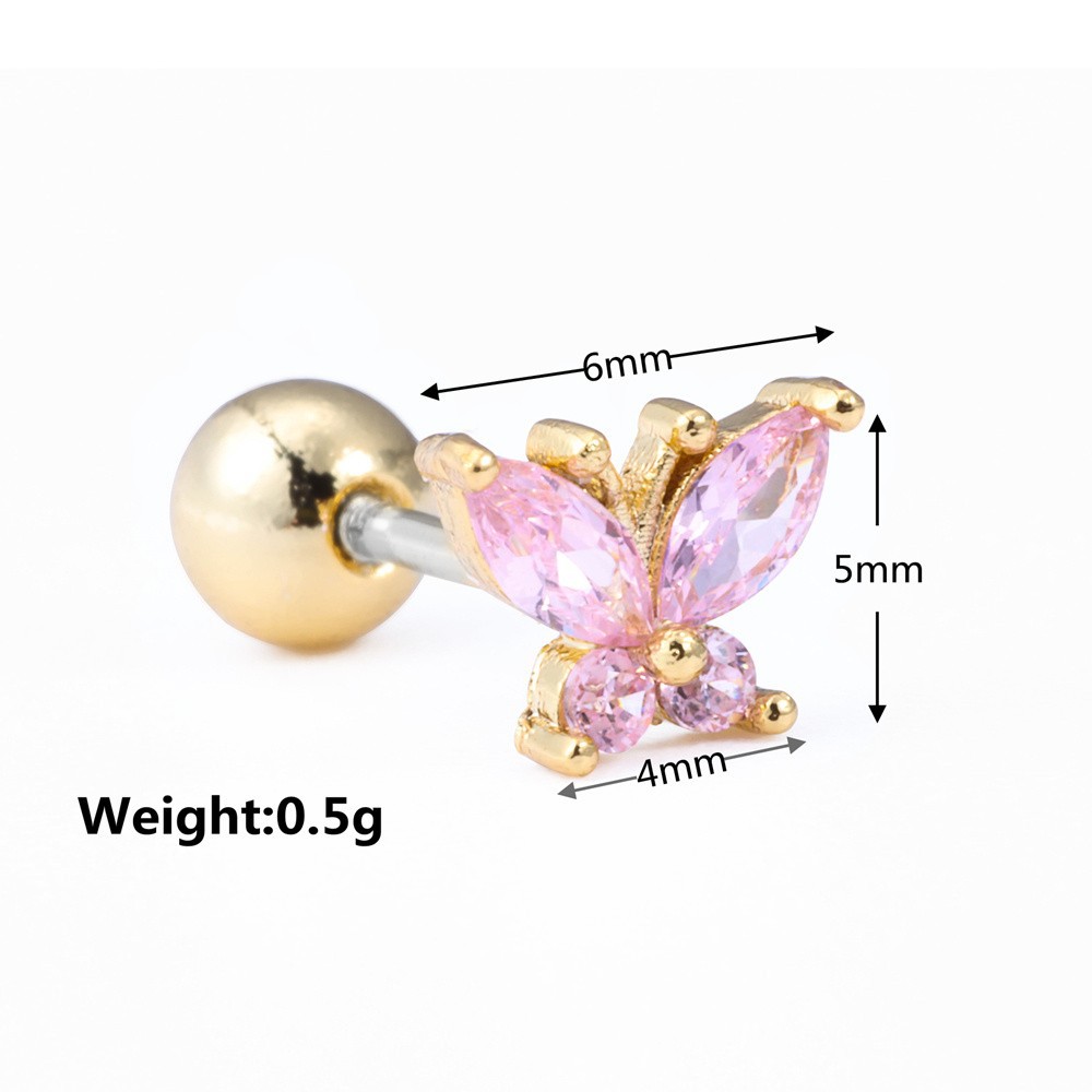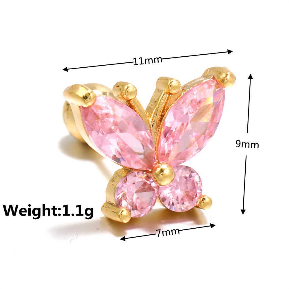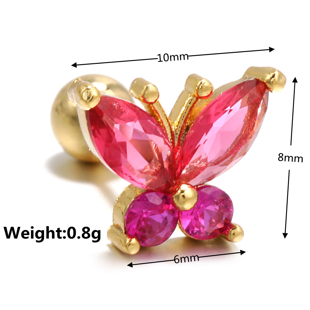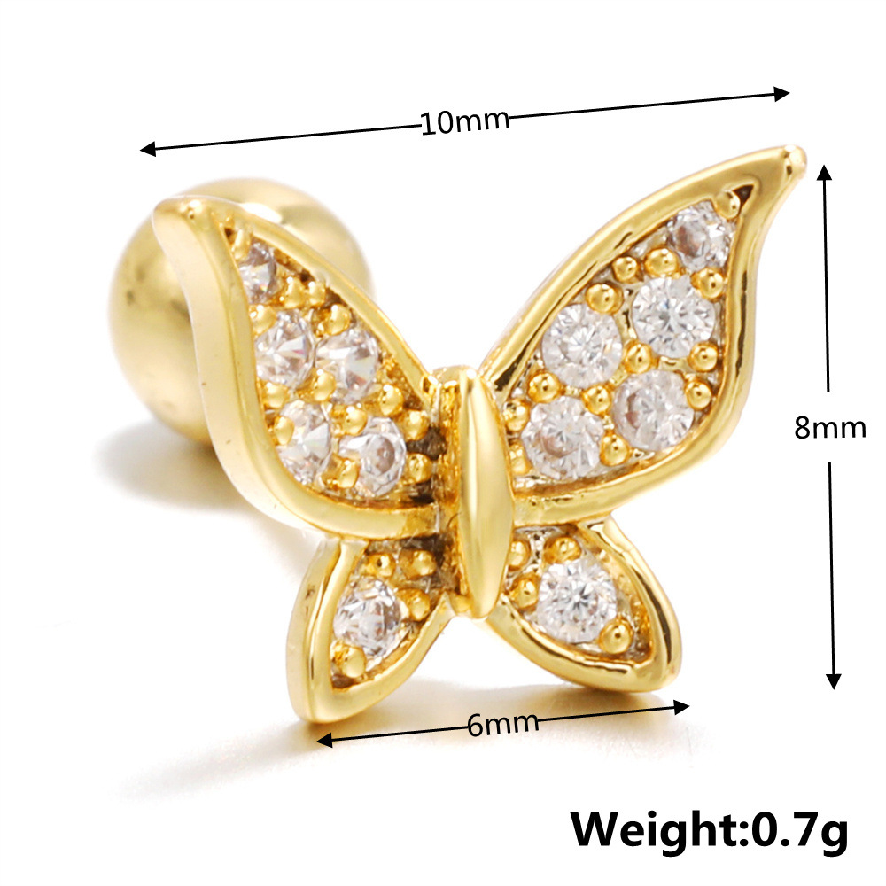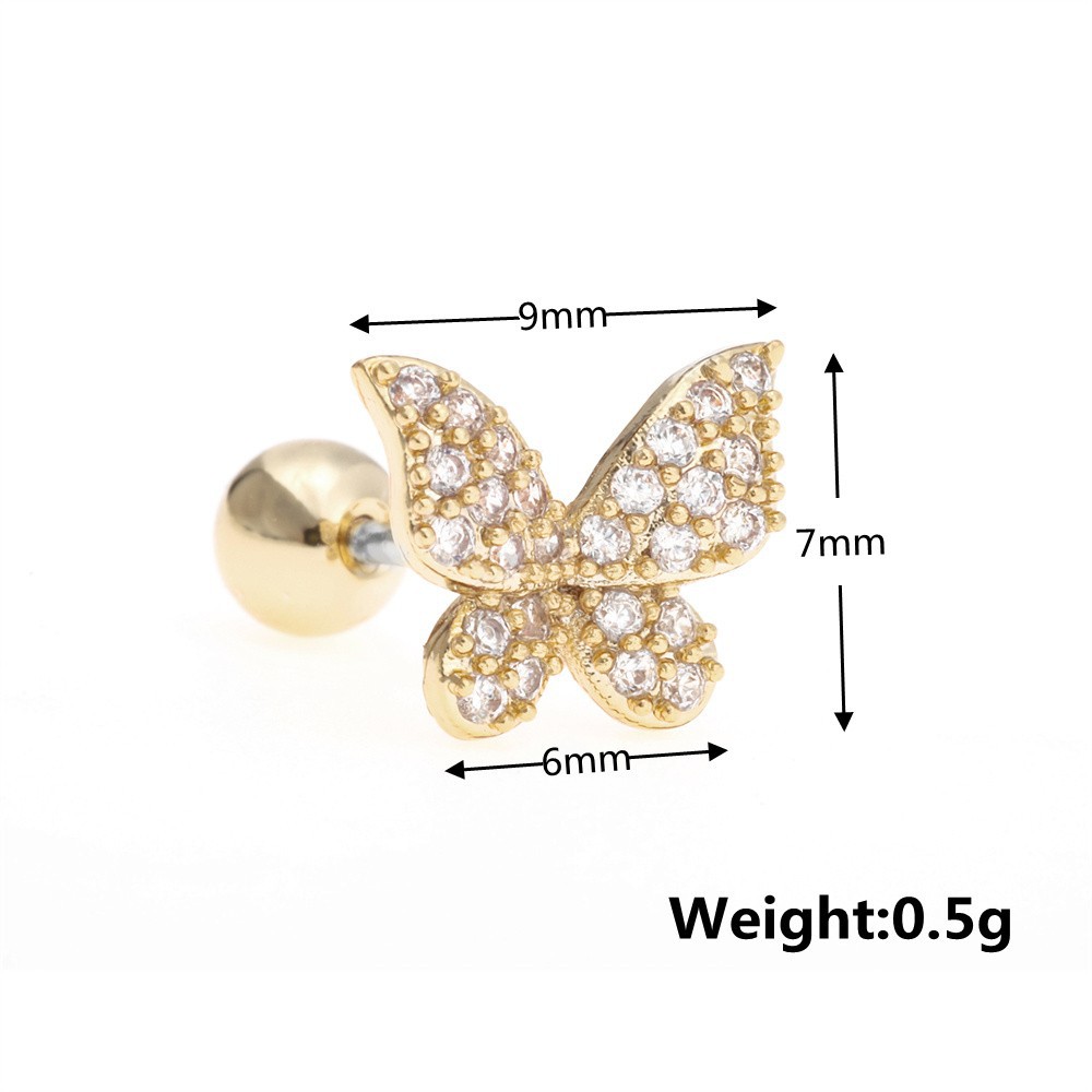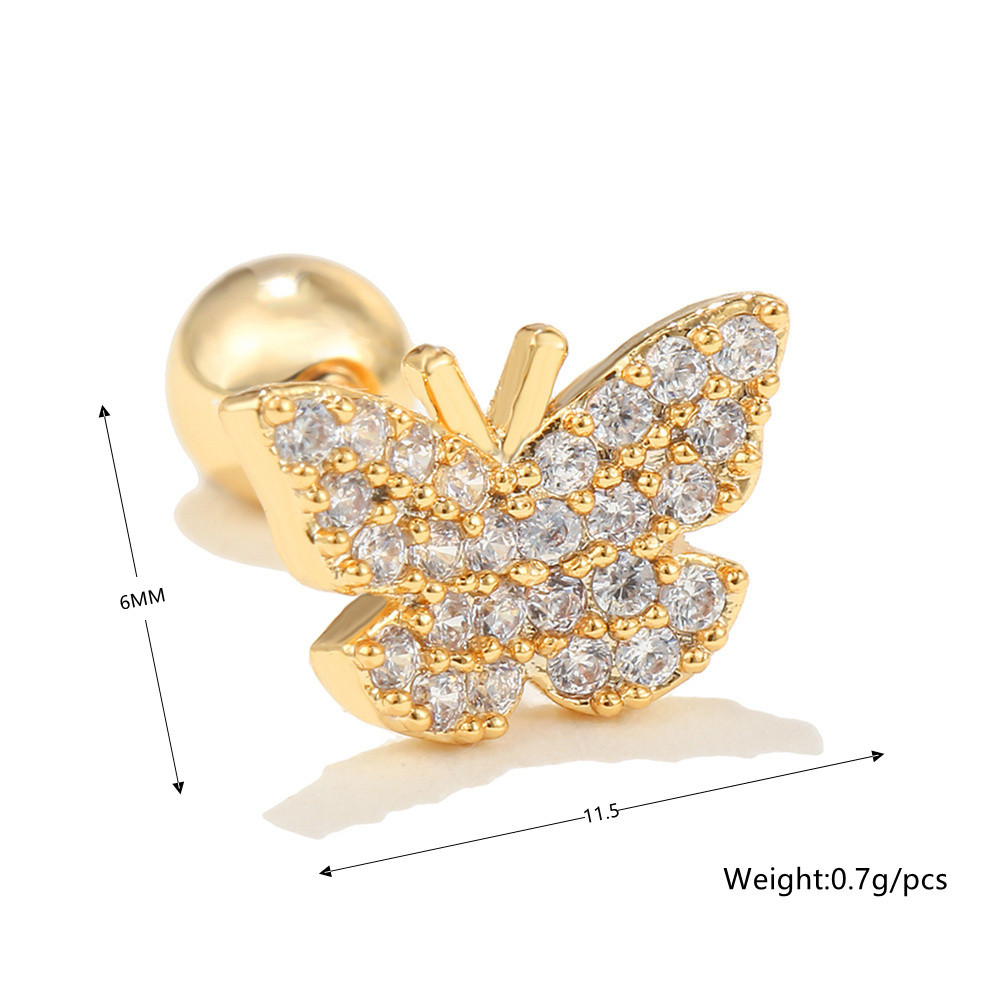 laiton piercing oreille, papillon, Placage, styles différents pour le choix & pavé de micro zircon & pour femme, Vendu par PC