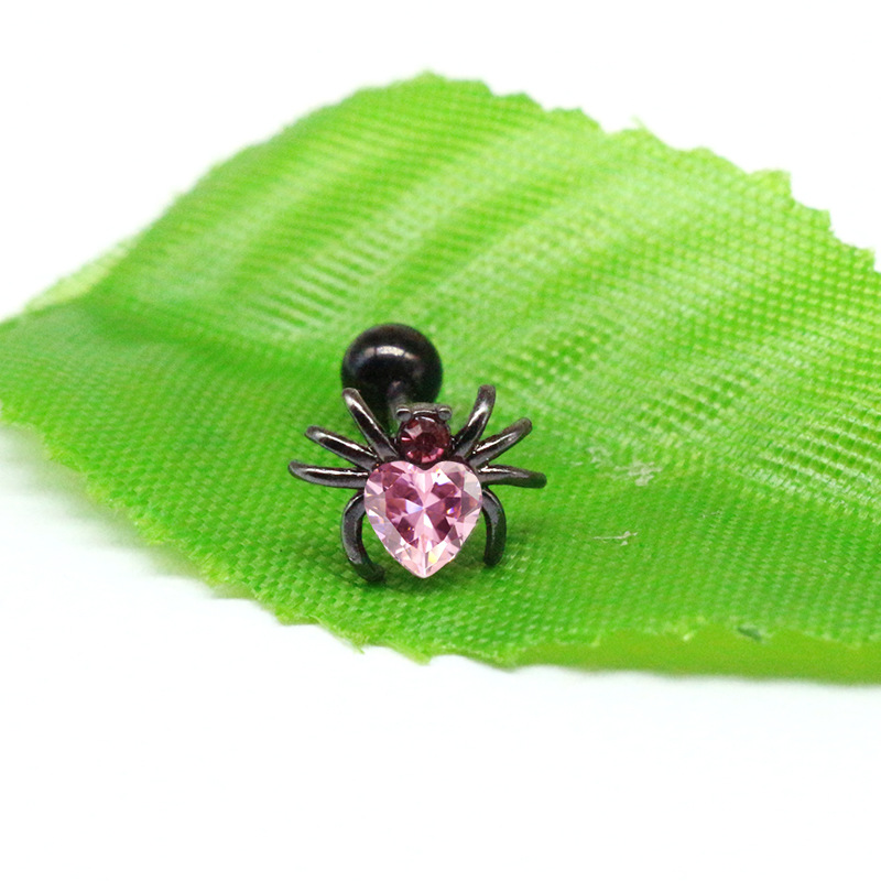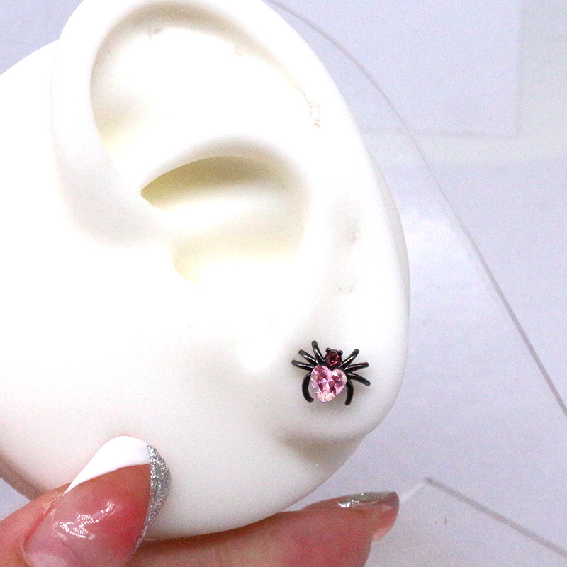 laiton piercing oreille, avec acier inoxydable 316L, araignée, Placage, unisexe & normes différentes pour le choix & pavé de micro zircon, noire, Vendu par PC