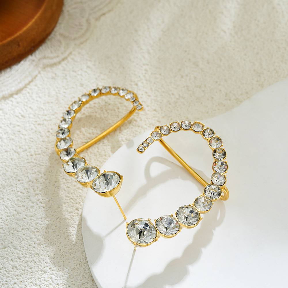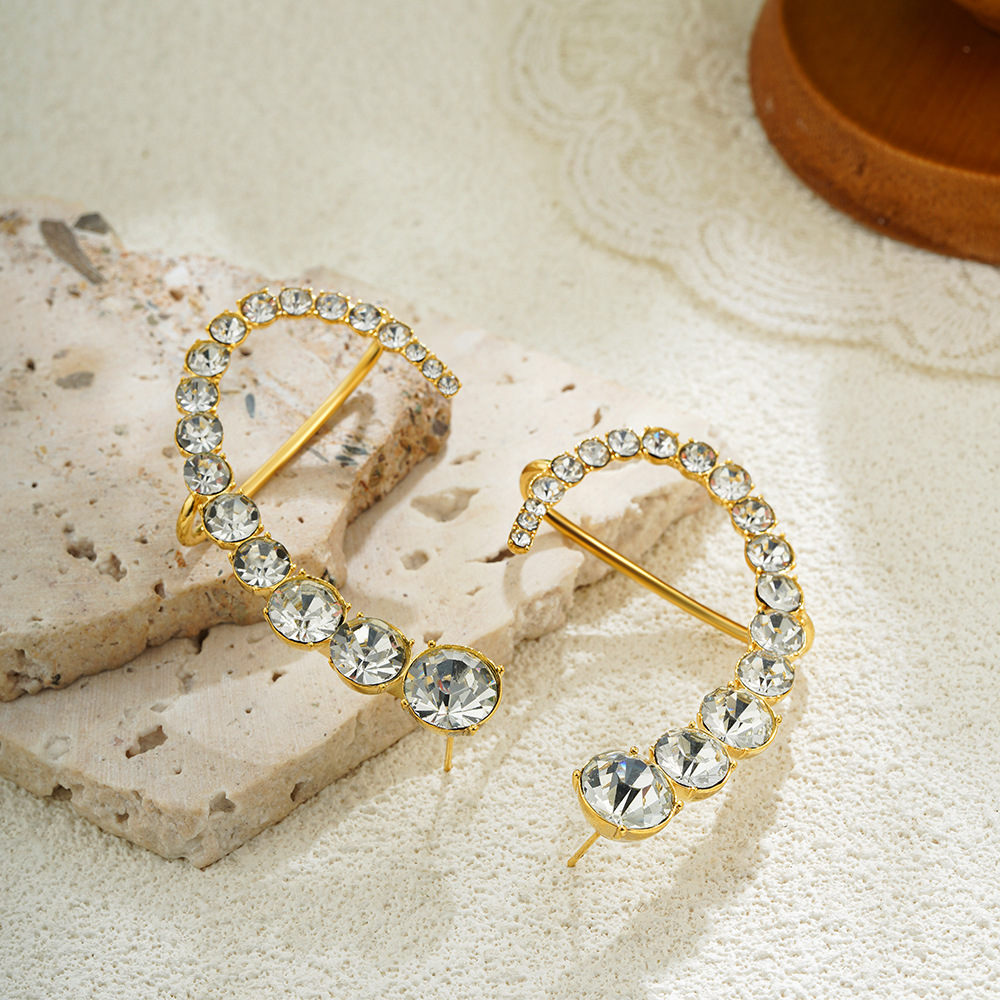 manchette de boucle d'oreille, alliage de zinc, avec earnut de caoutchouc, acier inoxydable puce boucle d'oreille, Placage de couleur d'or, avec strass Vendu par PC