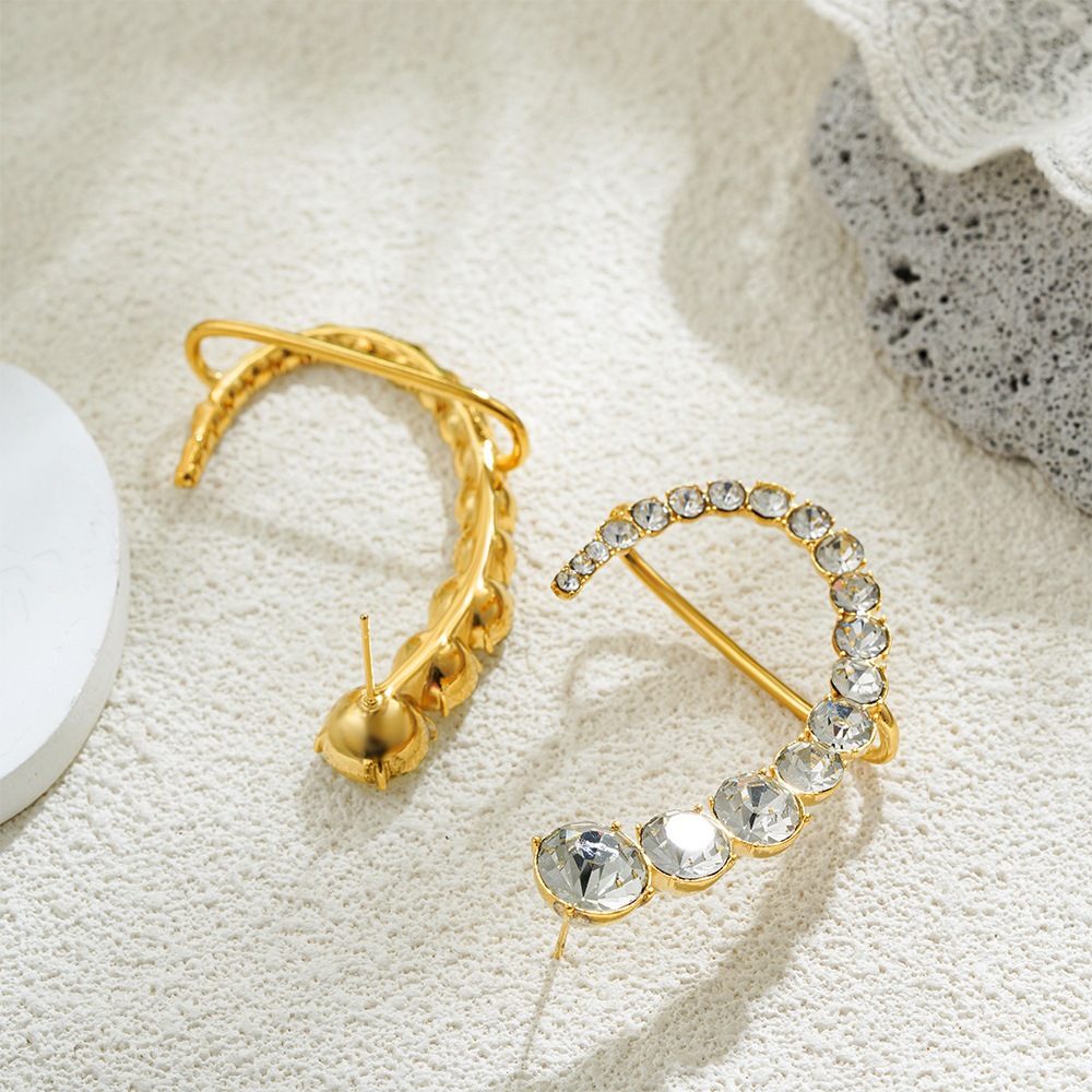 manchette de boucle d'oreille, Acier inoxydable 304, Plaqué or 18K, bijoux de mode & pavé de micro zircon & pour femme, Vendu par paire