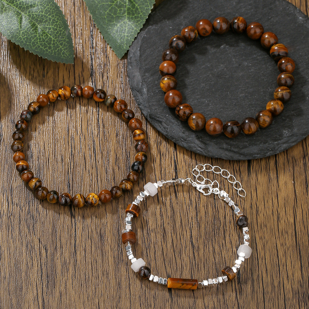 oeil de tigre bracelet, avec alliage de zinc, Placage de couleur d'or, bijoux de mode, plus de couleurs à choisir, 3PC/fixé, Vendu par fixé