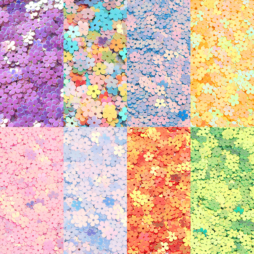 paillettes en plastique, plastique PVC, fleur, DIY, plus de couleurs à choisir, 6.8mm, Trou:Environ 1.3mm, Environ 30sol/sac, Vendu par sac
