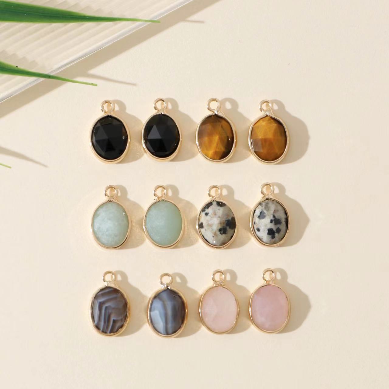 pendentif en alliage zinc à gemme , Pierre naturelle, avec alliage de zinc, ovale, Placage de couleur d'or, DIY & différents matériaux pour le choix, plus de couleurs à choisir, 9x14mm, Vendu par PC