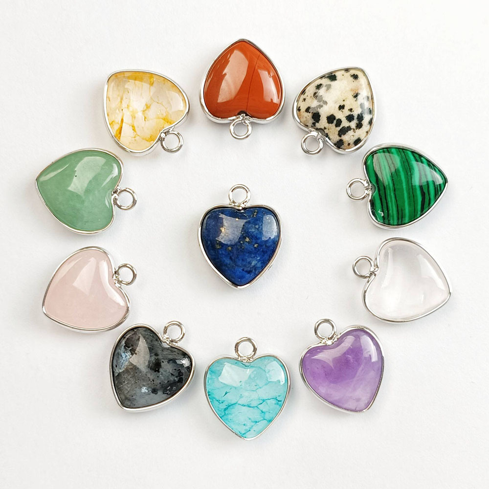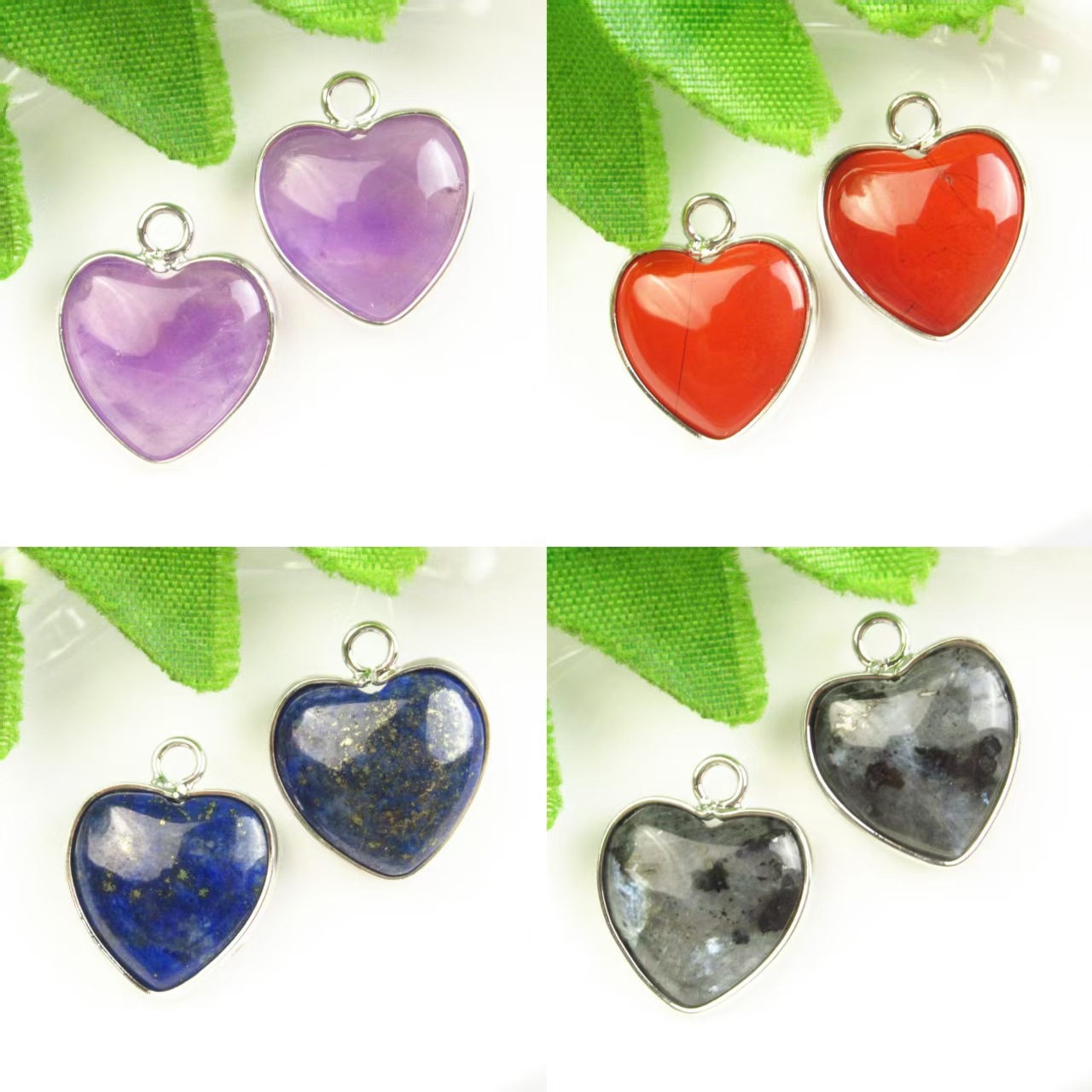 pendentif en alliage zinc à gemme , Pierre naturelle, avec alliage de zinc, coeur, DIY & différents matériaux pour le choix, plus de couleurs à choisir, 16x16mm, Vendu par PC