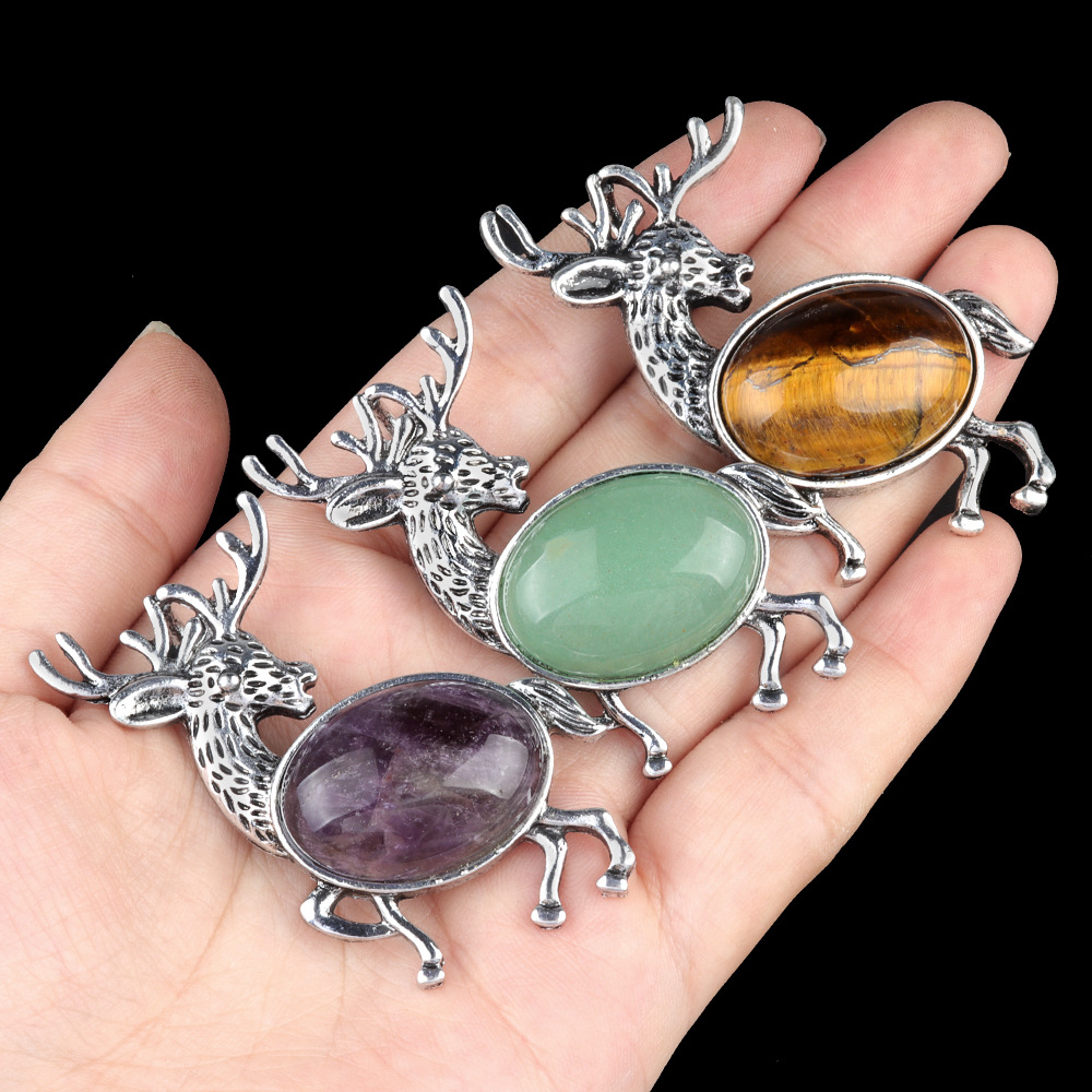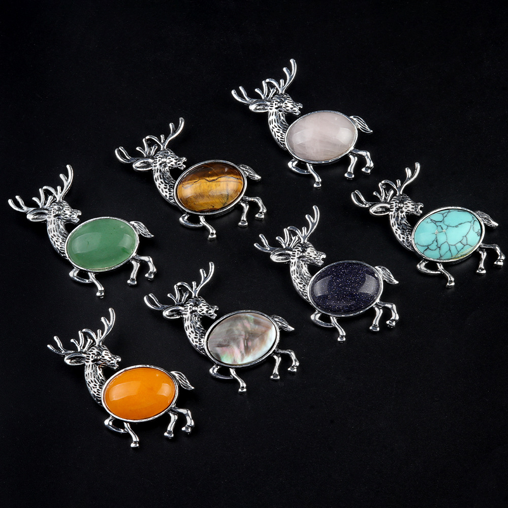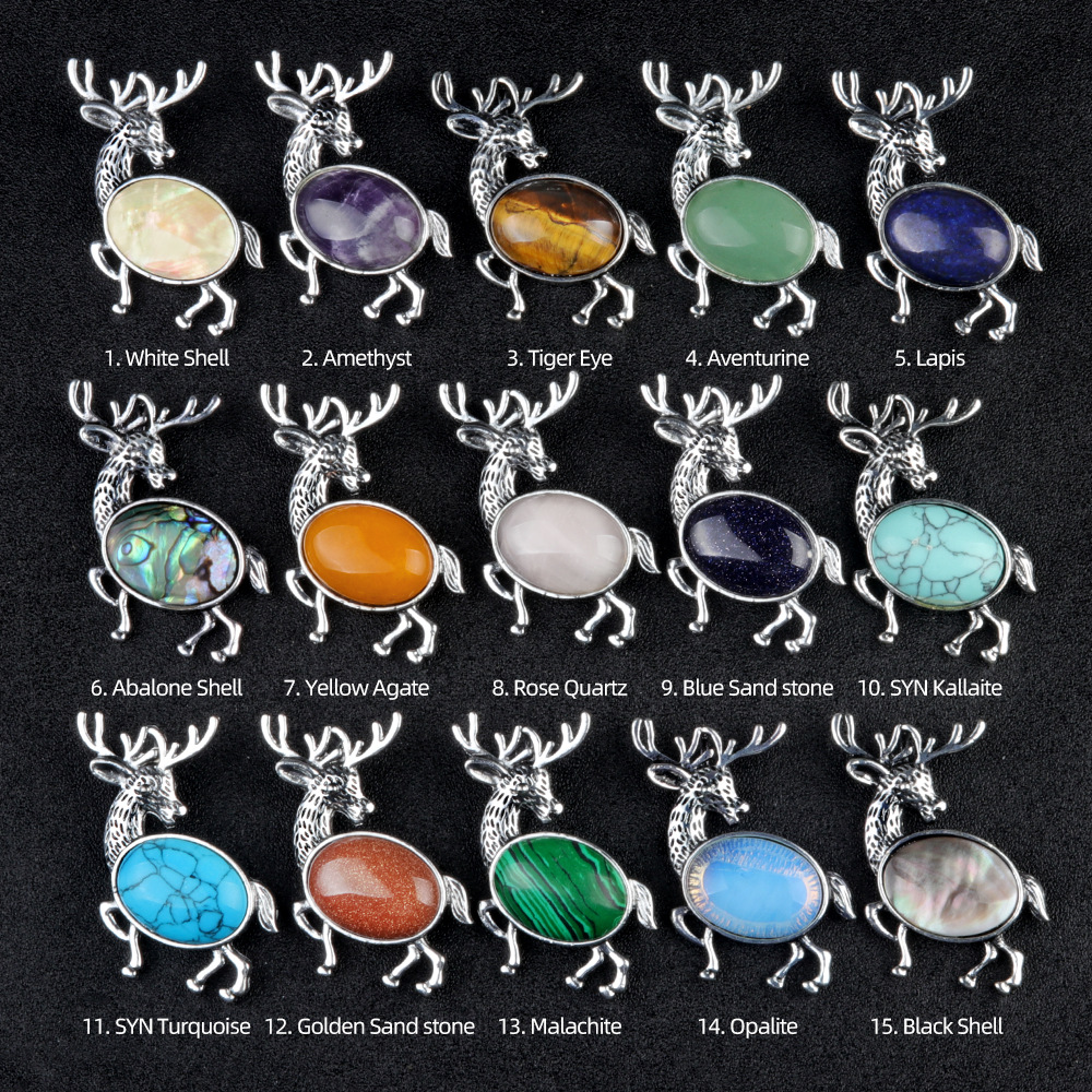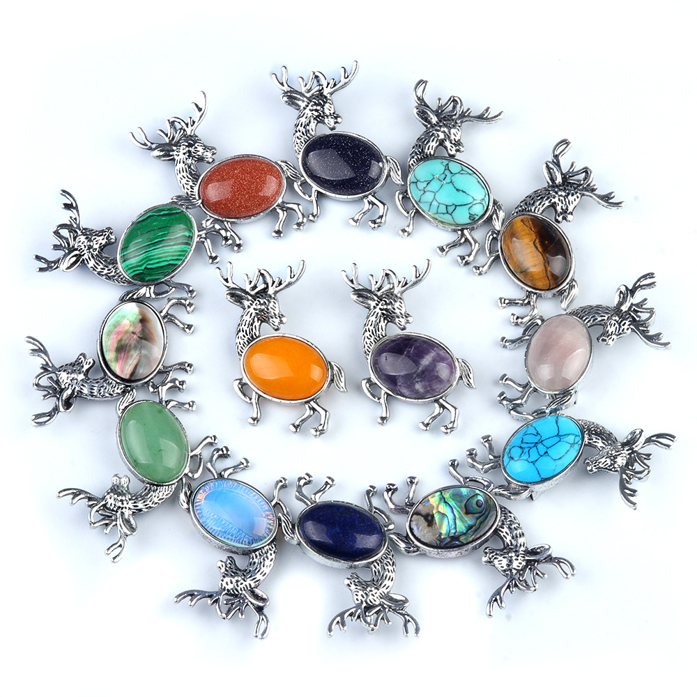 pendentif en alliage zinc à gemme , alliage de zinc, avec Pierre naturelle, gazelle, Placage de couleur argentée, DIY & différents matériaux pour le choix, plus de couleurs à choisir, Vendu par PC