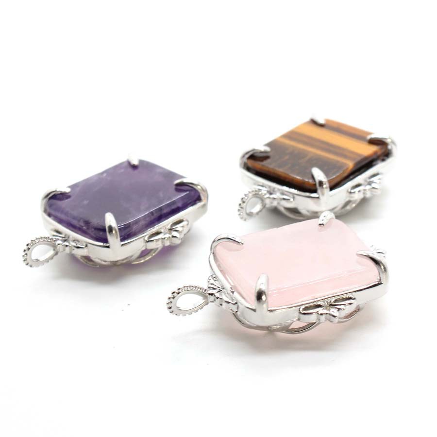 alliage de zinc Pendentif, avec Pierre naturelle, Placage de couleur argentée, styles différents pour le choix & avec strass, sans plomb et cadmium - Vendu par PC