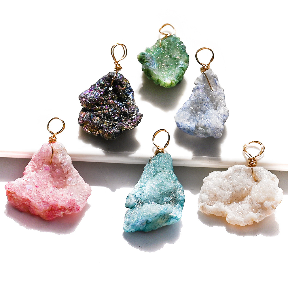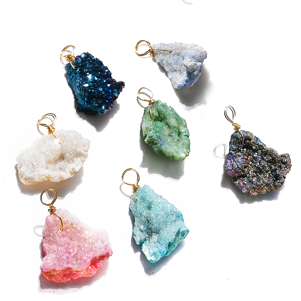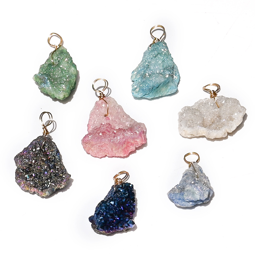 pendentif en alliage zinc à gemme , Pierre naturelle, avec alliage de zinc, Placage de couleur d'or, DIY, Couleur aléatoire, 25x45mm, Vendu par PC