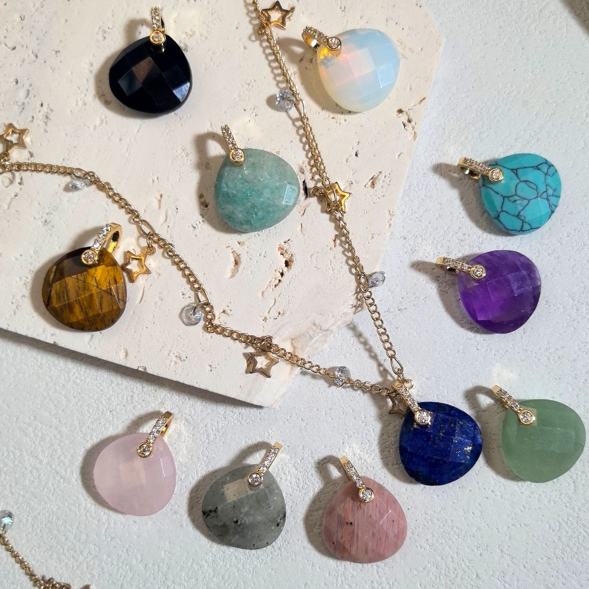 pendentif en alliage zinc à gemme , pierre gemme, avec alliage de zinc, pendule, Placage de couleur platine, différents matériaux pour le choix Environ Vendu par PC