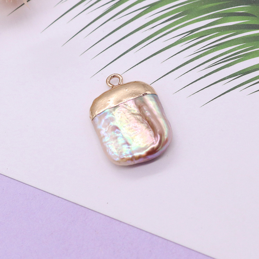 pendentif en laiton de perle d'eau douce cultivée, Plaqué de couleur d'or rose, couleurs mélangées, 19x17.5- 9-10mm Environ 4mm Vendu par sac
