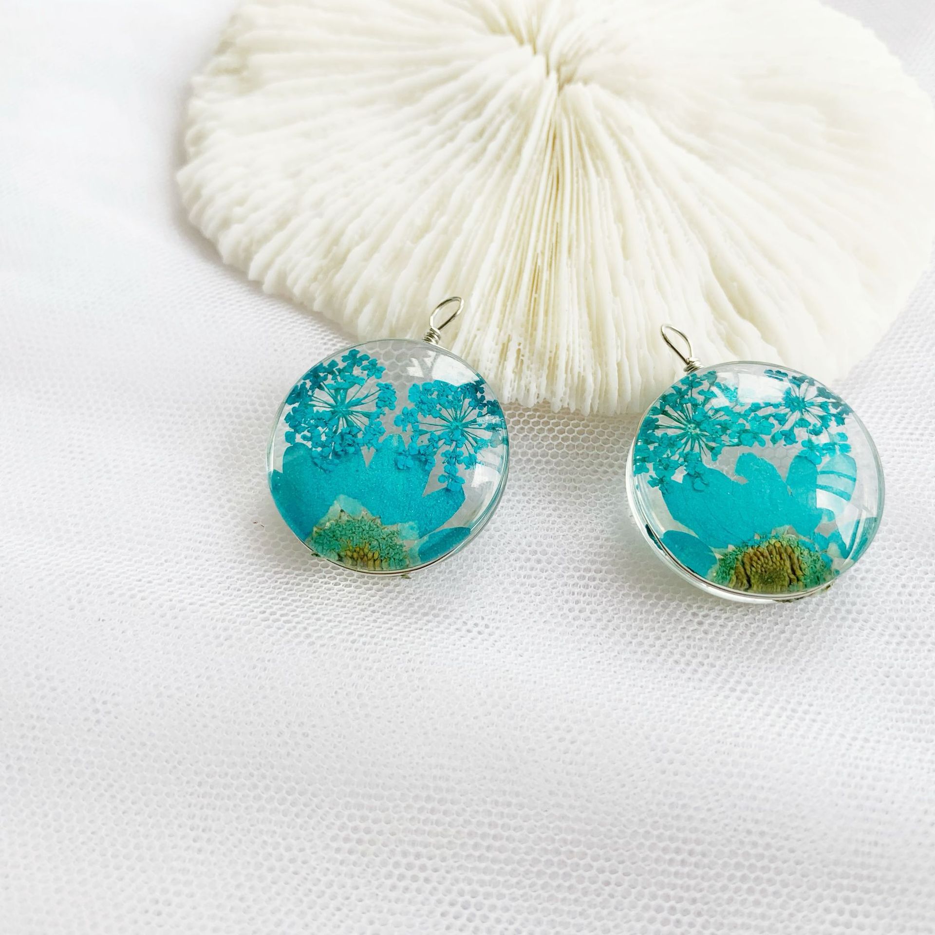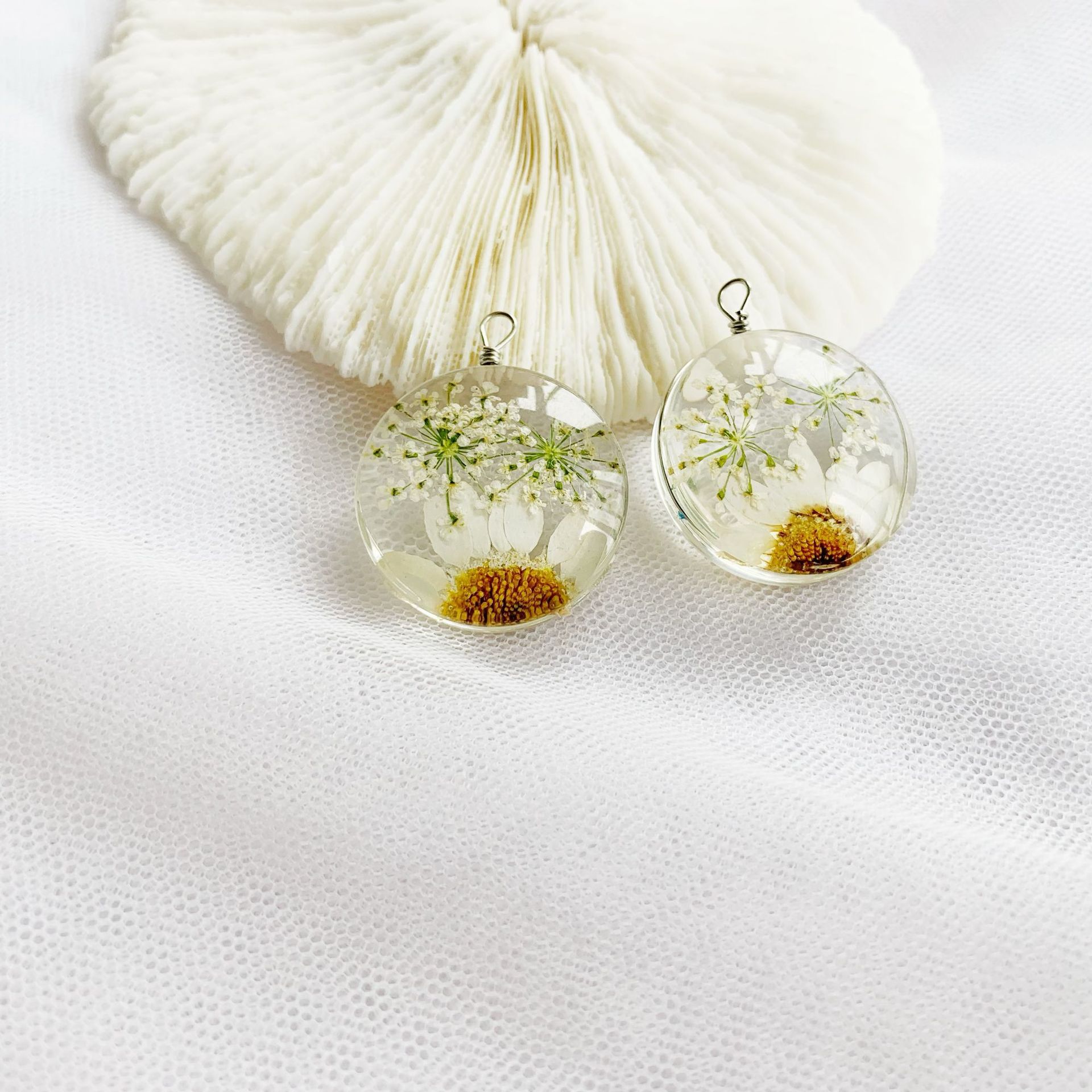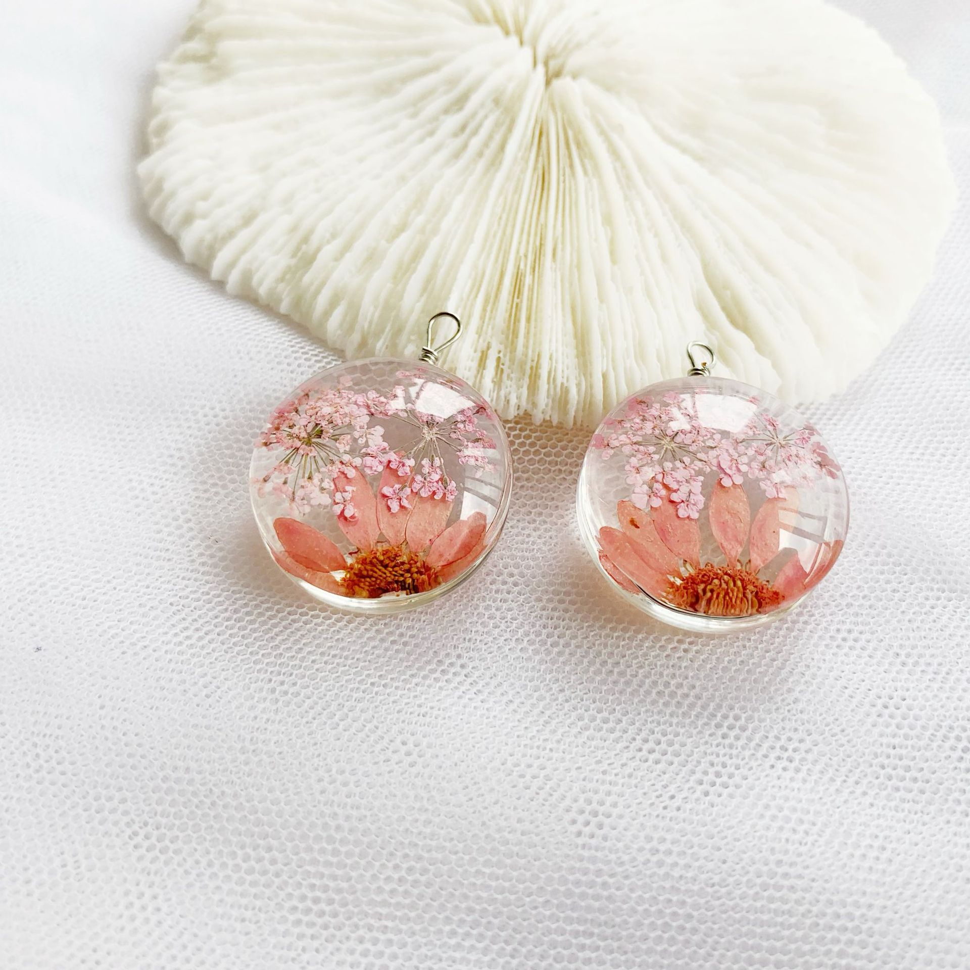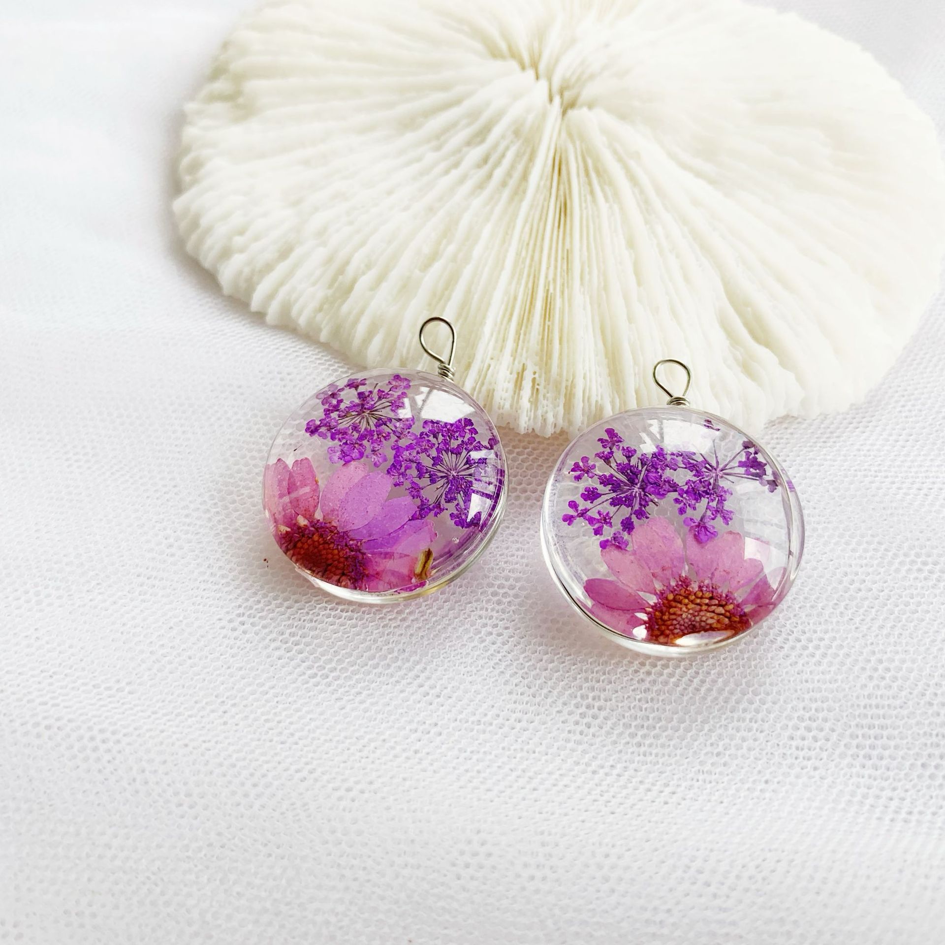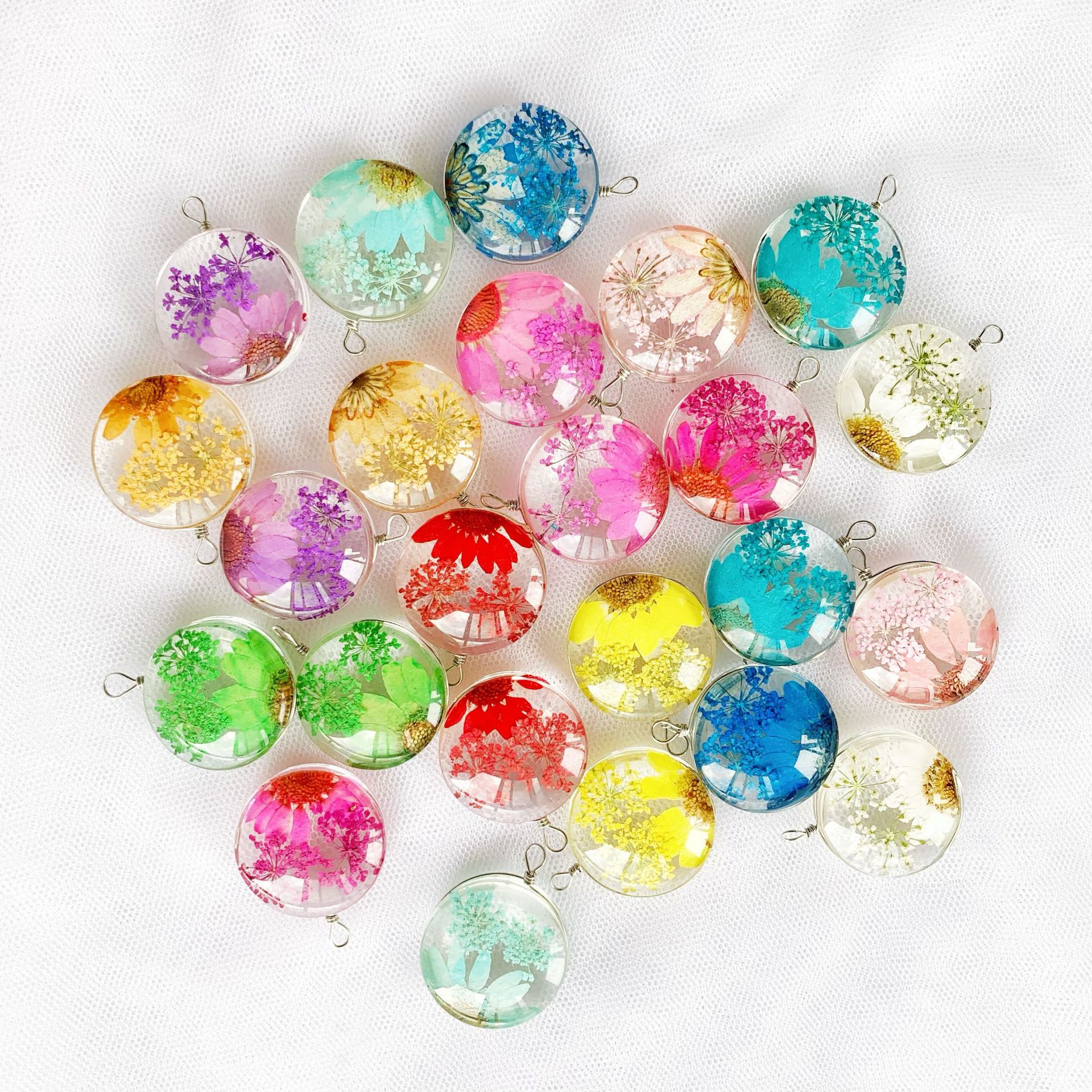 pendentif en verre , avec Fleurs séchées, Rond, goutté d'époxy, DIY, plus de couleurs à choisir, 16mm, Vendu par PC