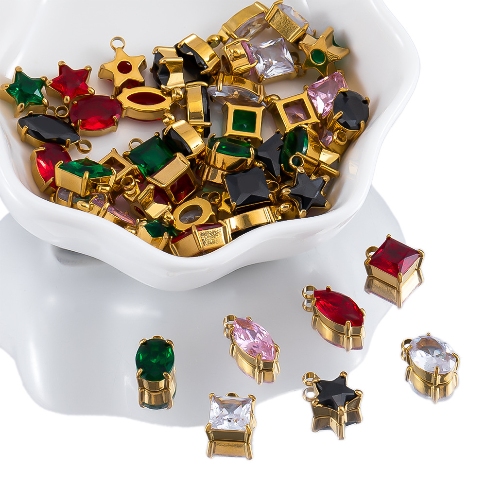 pendentif en verre , Acier inoxydable 304, avec verre, Placage, DIY, plus de couleurs à choisir, 10PC/sac, Vendu par sac