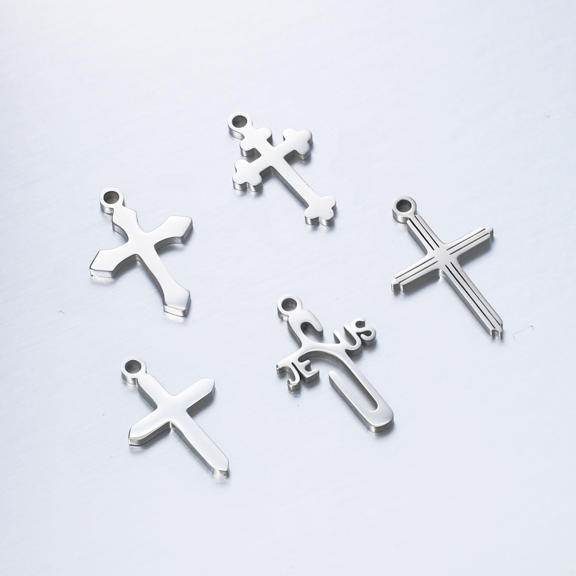 pendentifs En acier inoxydable de Croix , Acier inoxydable 304, poli, DIY & styles différents pour le choix, couleur originale, 5PC/sac, Vendu par sac