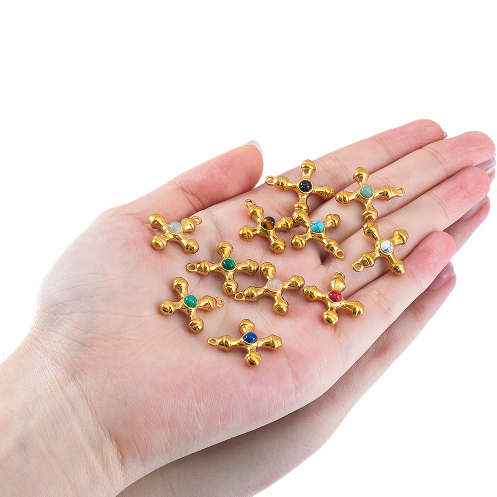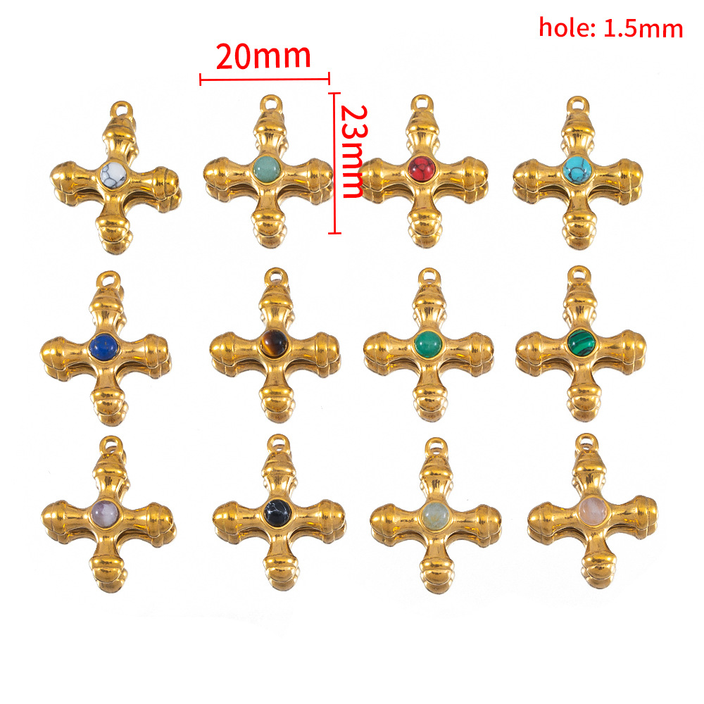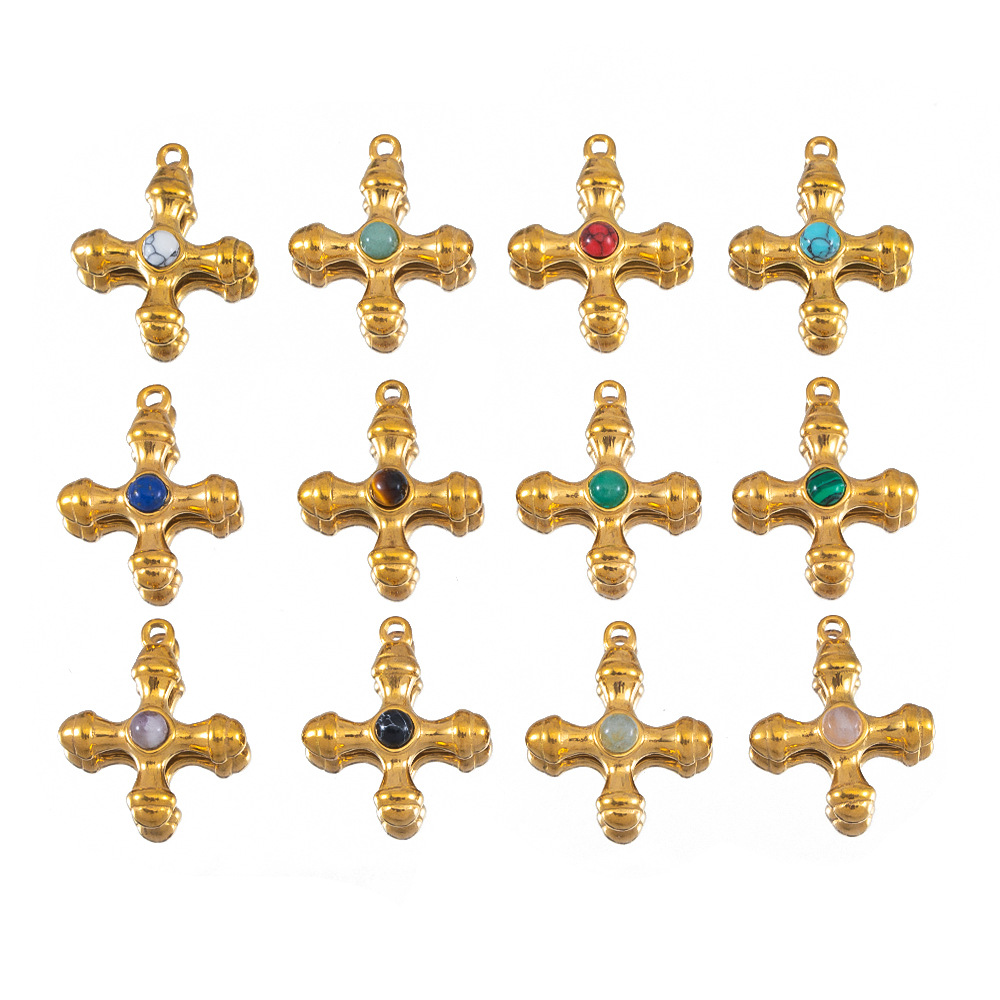 pendentifs En acier inoxydable de Croix , Acier inoxydable 304, avec Pierre naturelle, Placage de couleur d'or, DIY & différents matériaux pour le choix, 2PC/sac, Vendu par sac