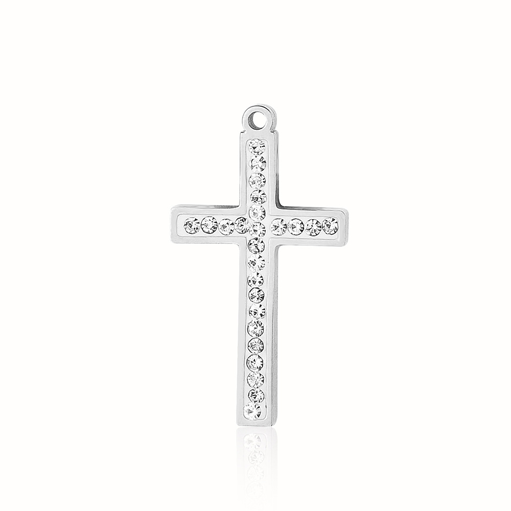 pendentifs En acier inoxydable de Croix , avec strass, couleur originale Environ 4mm, Vendu par PC