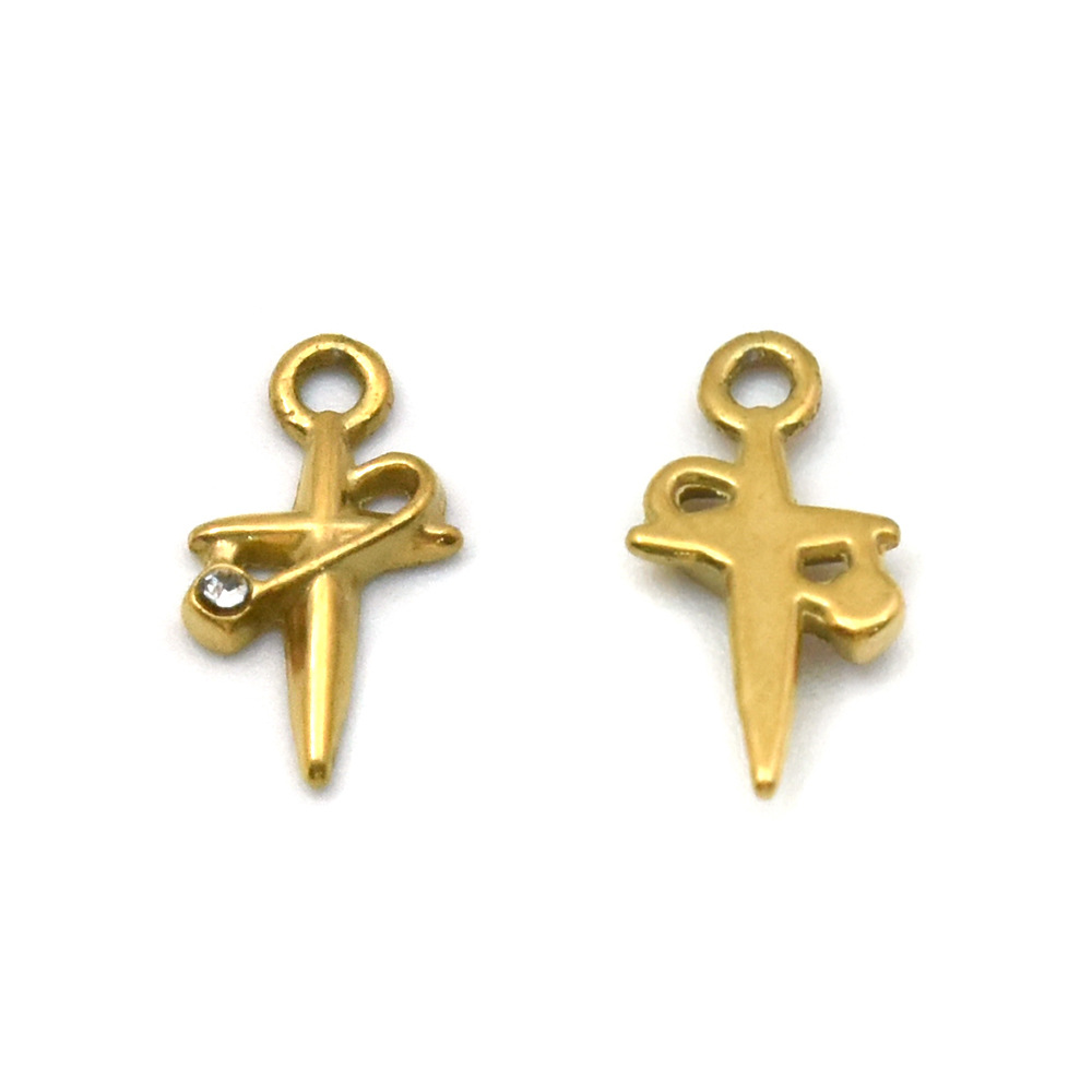 pendentifs En acier inoxydable de Croix , avec strass, couleur originale Environ 4mm, Vendu par PC