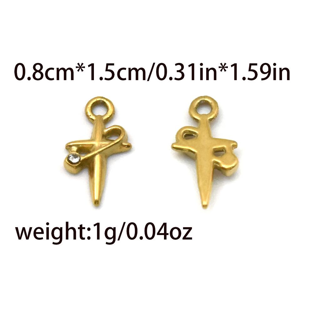 pendentifs En acier inoxydable de Croix , Acier inoxydable 304, Placage de couleur d'or, DIY & pavé de micro zircon, Vendu par PC