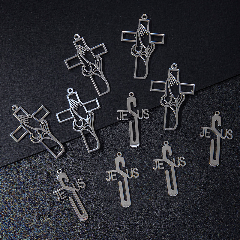 pendentifs En acier inoxydable de Croix , Acier inoxydable 304, Placage de couleur argentée, DIY & styles différents pour le choix, plus de couleurs à choisir, 10PC/paire, Vendu par paire